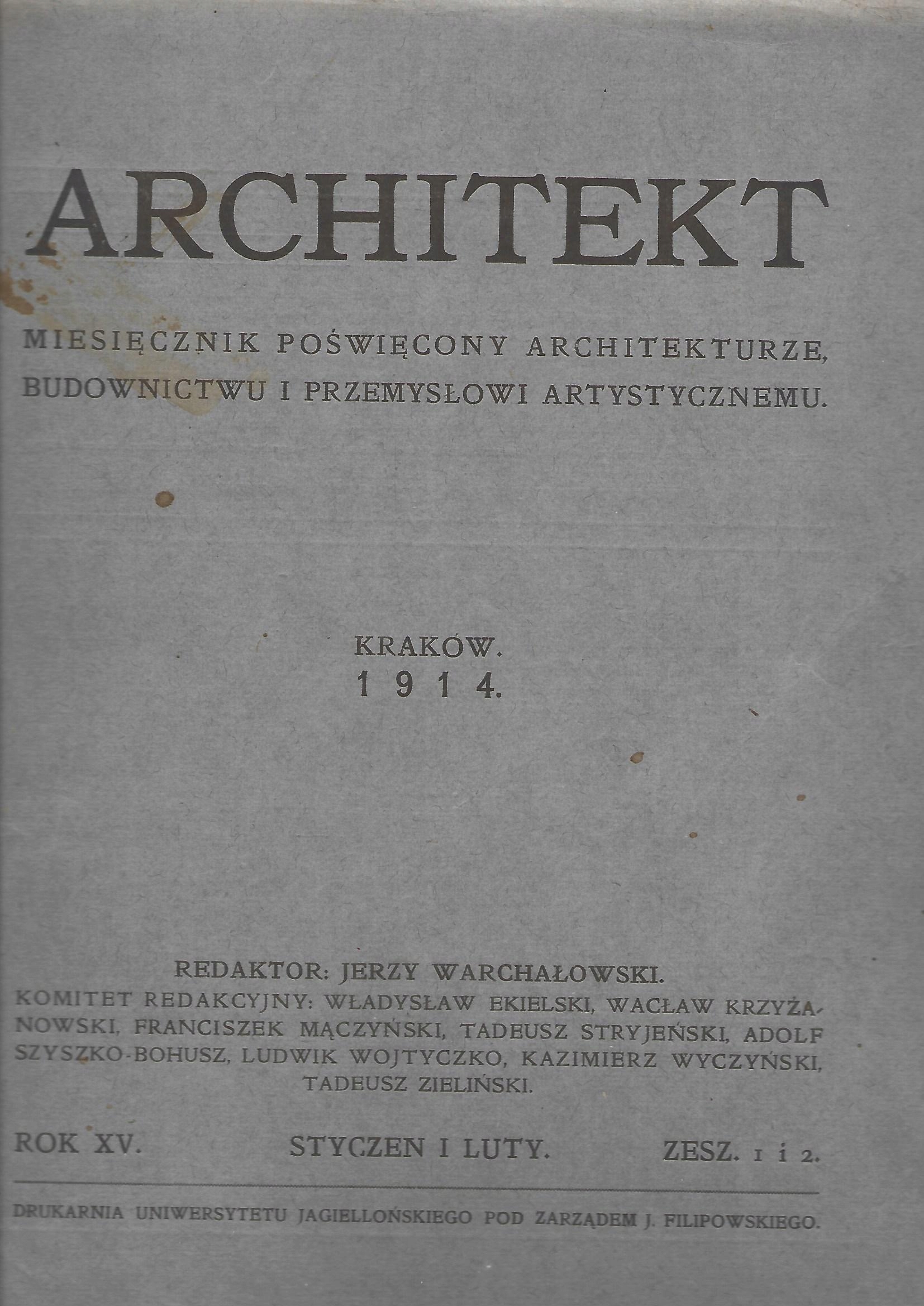 MIESIĘCZNIK ARCHITEKT STYCZEŃ I LUTY 1914