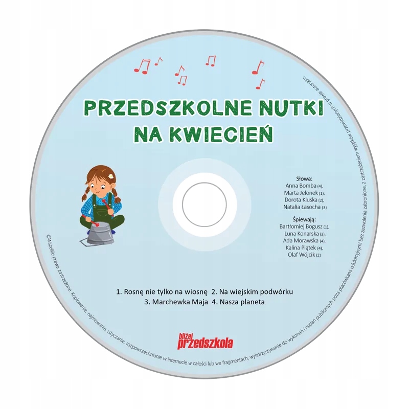 - CD"Przeszkolne nuttki na wiecień" з мінусовками та піснями у вокальному та інструментальному варіантах співвідносяться зі змістом щомісячного журналу;