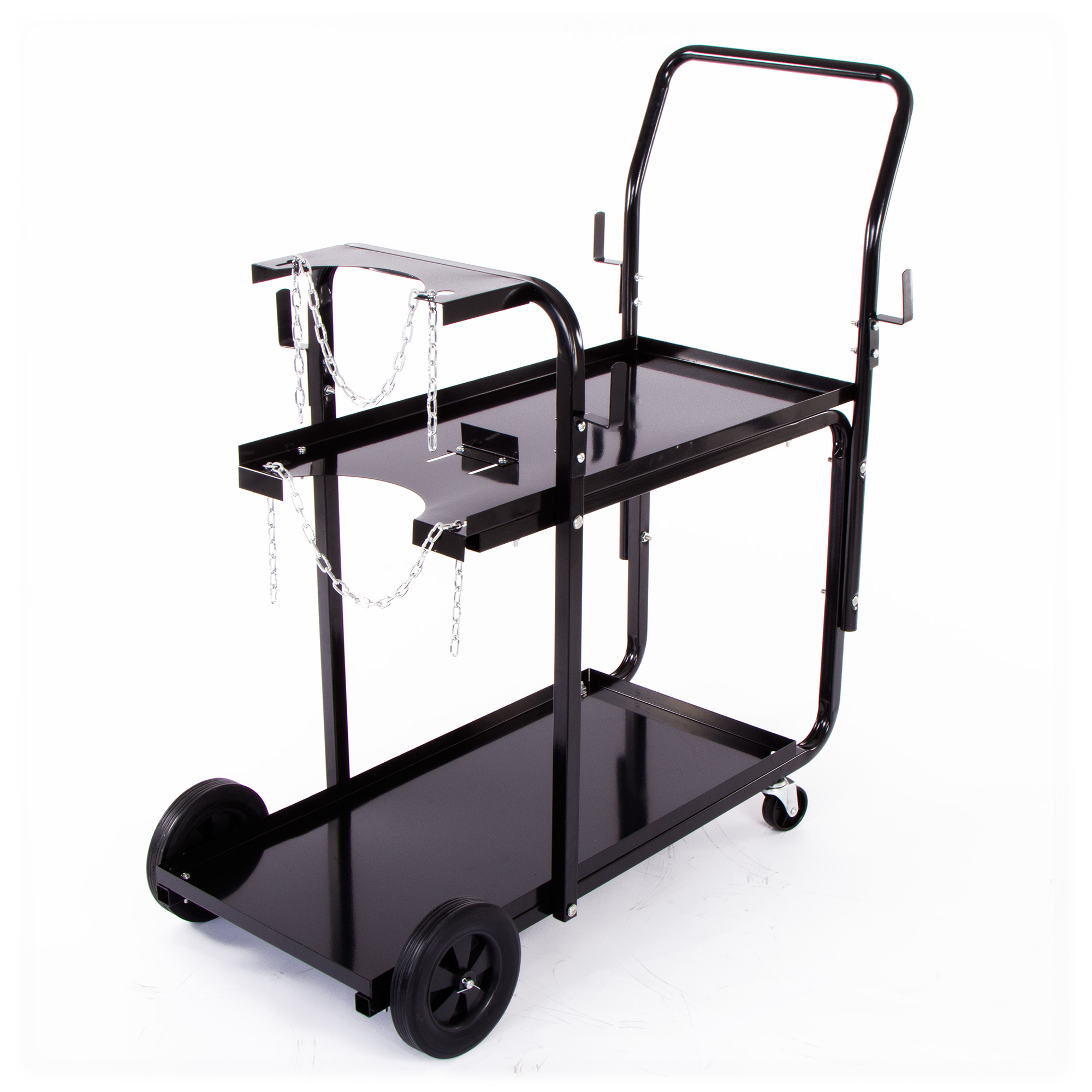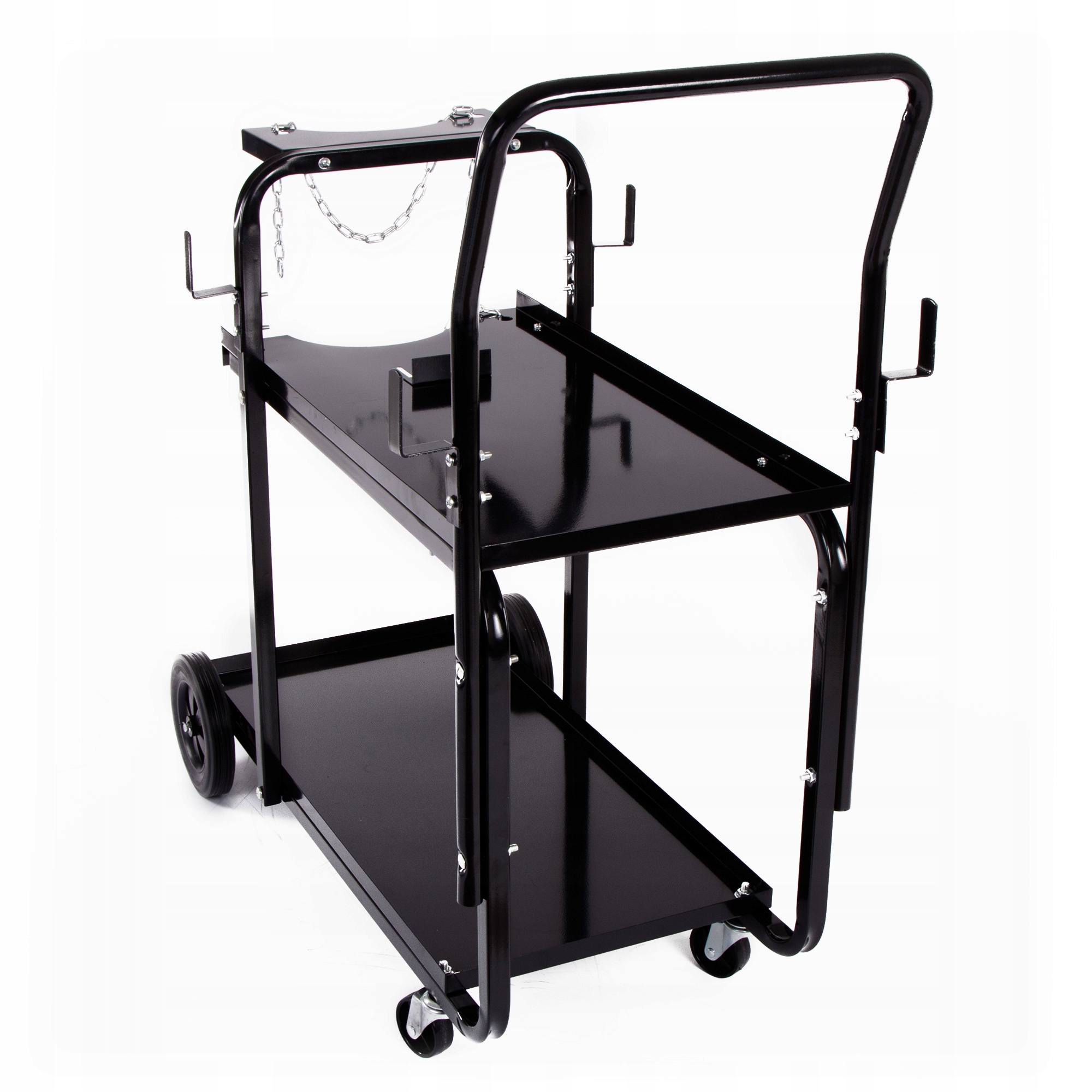 Зварювальний візок використовується при використанні зварювальних комплектів. Стелажі з ідеальною поверхнею зроблені міцно, між полицями є відповідний простір, що забезпечує широке використання візка. Задня частина призначена для транспортування балона, який можна закріпити ланцюгами. Для зручності також використовуються підвіски для ручок або шлангів.