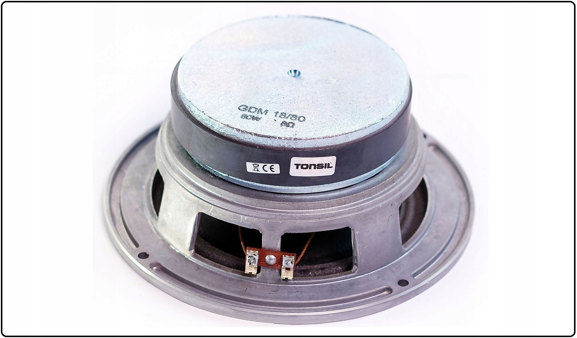 У трансдукері GDM 18/80 8 Ом було використано рішення в з 11-центриметрового магніту, зробленого з фериту . Ferryt - це керамічний матеріал із заліза та бруска або оксиду сторінок. Хоча він важчий, ніж інші магніти, він покращує стиснення потужності, не втрачаючи магнітних властивостей у складних умовах - навіть при високій температурі. Феритовий магніт стійкий до корозії та різні типи агресивних речовин, наприклад, кислоти, солі або мастила. Вага магніту становить 0,6 кілограмів, його висота - 18 міліметрів, зовнішній діаметр - 110 міліметрів, а внутрішні 60 міліметрів.