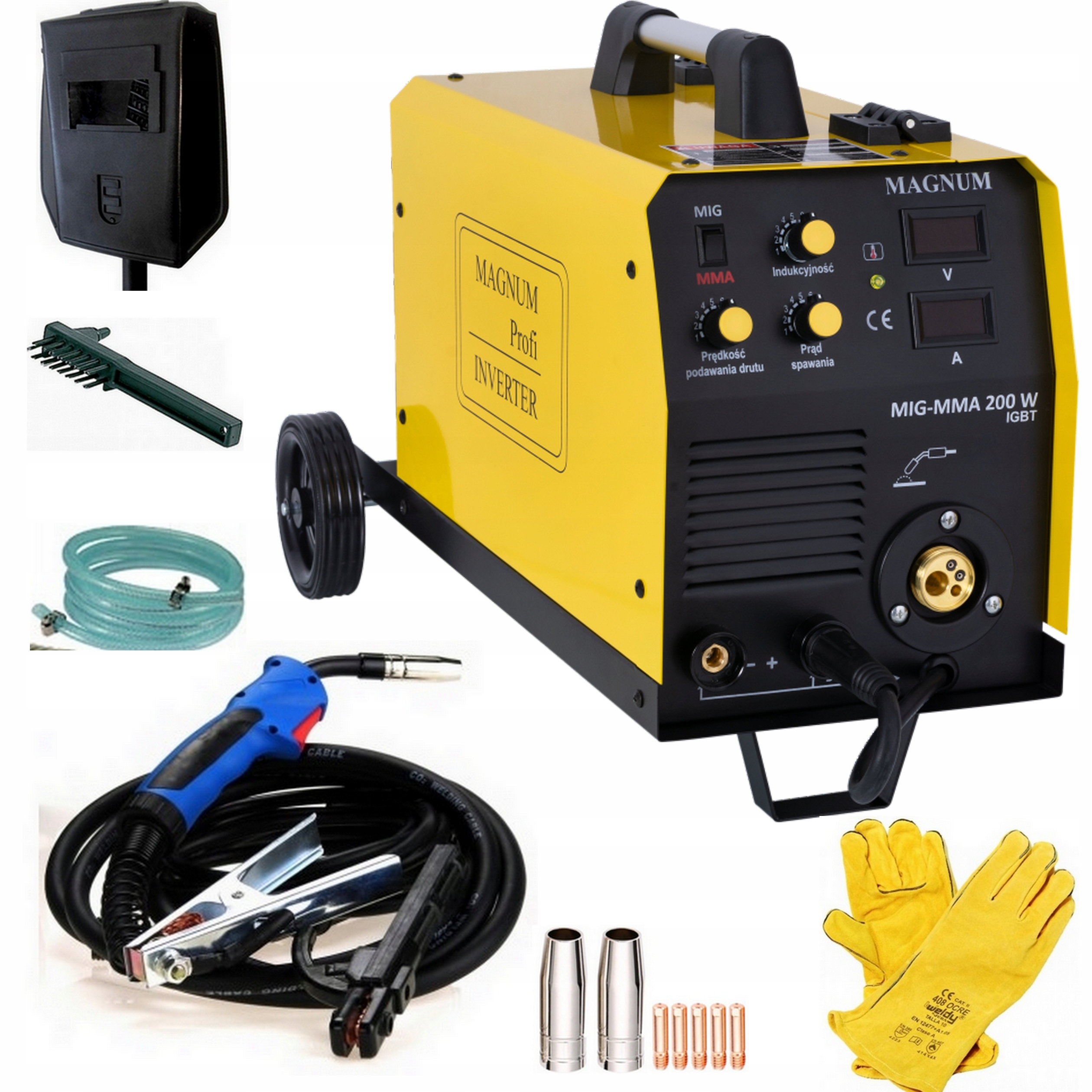 Апарат MAGNUM MIG/MAG-MMA 200W IGBT - це професійний напівавтоматичний зварювальний апарат, призначений для ручного електрозварювання низьковуглецевих, низьких -легована сталь (MAG), легована сталь (MIG) і алюміній і його сплави. Апарат також можна використовувати для зварювання MMA з використанням плавких електродів. Призначений для всіх видів зварювальних робіт в слюсарних, ремонтних майстернях, промислових цехах і на заводах.