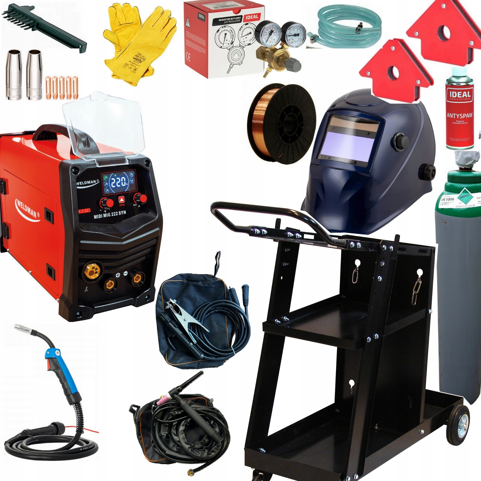 MIGOMAT MIG MMA TIG Зварювальний апарат 3 в 1 MICRO MIG 222 SYNERGY DC LIFT + візок