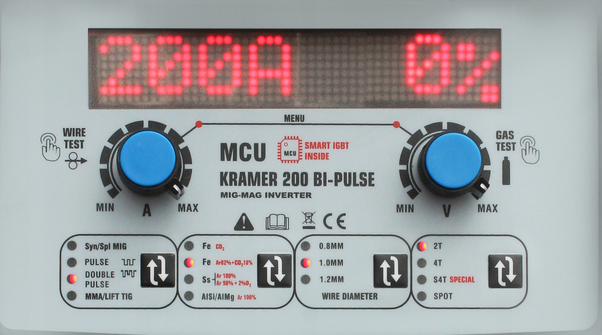 Інтуїтивна, легка панель управління -дозволяє швидко встановити всі найважливіші параметри зварювання. Завдяки синергетичним налаштуванням можна автоматично вибрати такі параметри зварювання, як: напруга, інтенсивність та швидкість подачі з однією ручкою. Пристрій також дозволяє вибрати діаметр дроту та тип зварного матеріалу, вибираючи для них параметри зварювання.