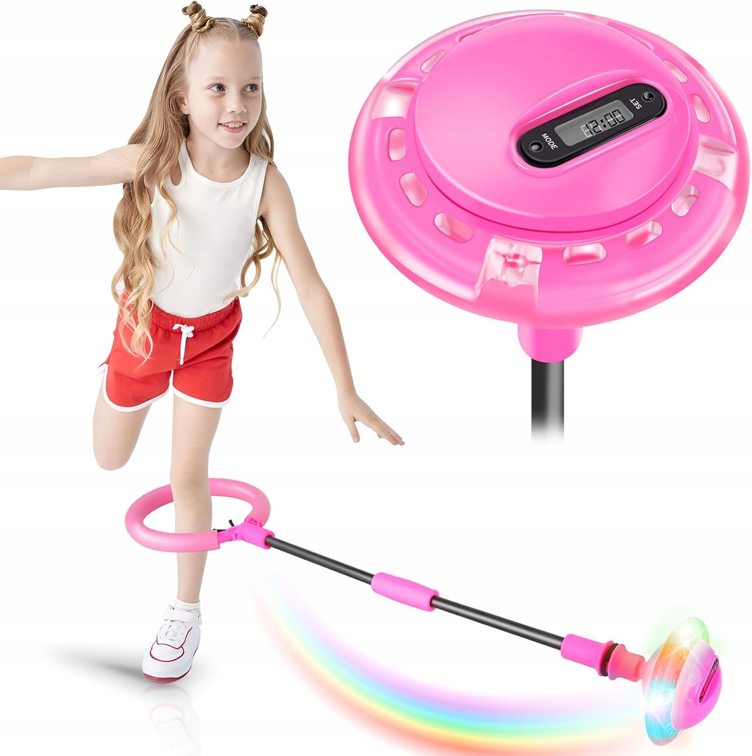 • Цей блимаючий обруч для стрибків перетворює нудні вправи на надзвичайно веселі, заохочуючи дітей рухатися та грати, вирішуючи проблему «занадто довго сидіти» — ідеальне поєднання вправ і розваг!