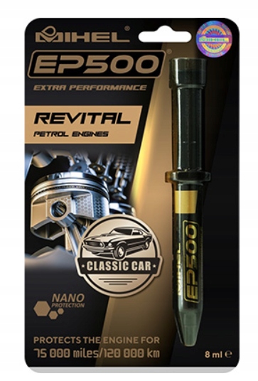 Mihel EP 500 для бензинових двигунів FOR CLASSICS - високоефективний препарат, призначений для захисту та ревіталізації бензинових двигунів класичних автомобілів. Інноваційна формула наночастинок з високою поверхнево-активною здатністю створює на металевій структурі довговічне, стійке захисне покриття з металокераміки з низькими коефіцієнтами опору та чудовими властивостями теплопровідності. Він значно знижує тертя і надовго захищає компоненти, практично виключаючи процес їх зношування. Регулярне використання може значно продовжити термін служби двигуна. Призначений для автомобілів з пробігом понад 62 000 миль/100 000 км. Забезпечує захист 75 000 миль/120 000 км