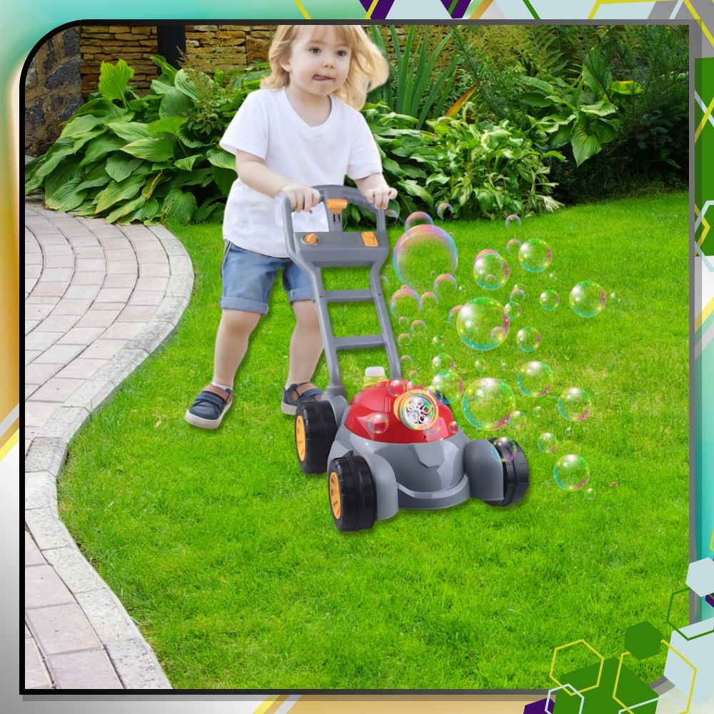 просто запустіть косарку, і вона почне виробляти сотні мильних бульбашок щохвилини! Це чудова визначна пам'ятка для гри в саду, парку чи пляжі.
