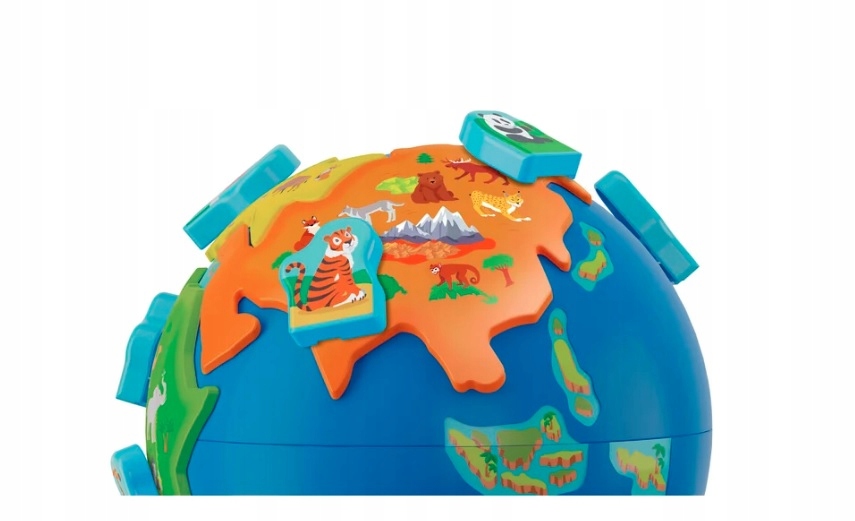 Великий електронний глобус ізпереробленого пластику з континентами та тваринами, які можна комбінувати щоб вивчити перші географічні поняття.