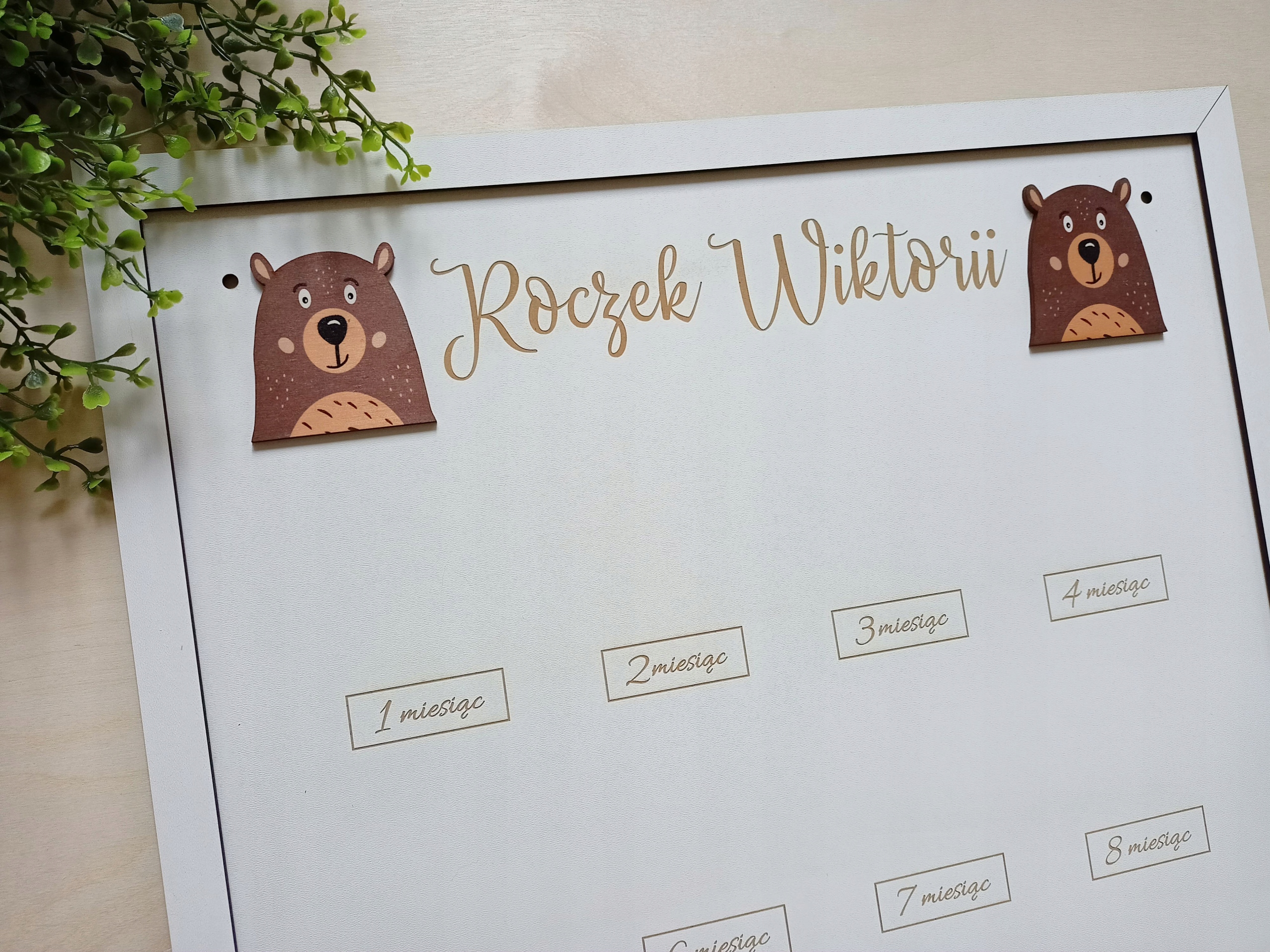 Графіка, текст на дошці та рамки вигравірувані. Ми можемо поставити будь-який текст, наприклад Рок (ім'я дитини), Перший рік життя (ім'я дитини).