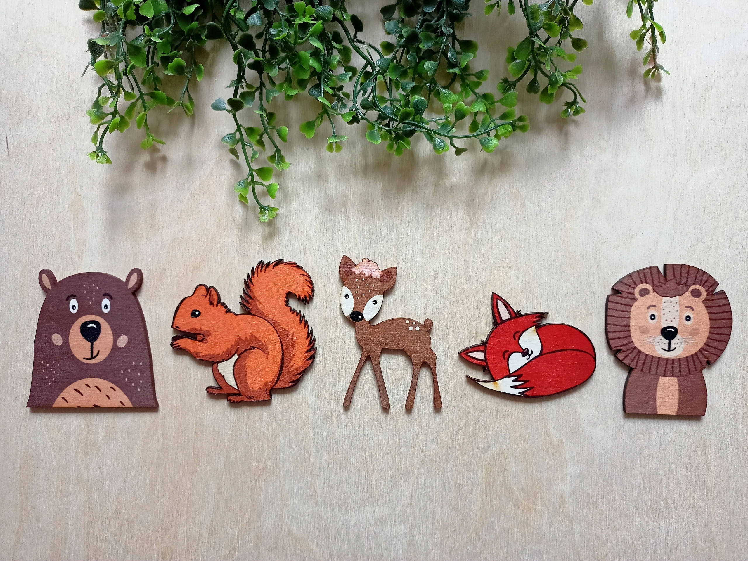 Графіки тварин створюють делікатний 3D-ефект і виготовлені з березової фанери 3 мм. На вибір: ведмедик, лисиця, лев, білка та олень. Якщо ви шукаєте інший, пишіть, можливо, він у нас є :)