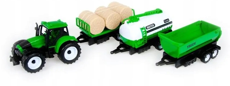З реалістично відтвореними машинами ви можете розважатися різними способами. Трактор має фрикційний привід, завдяки якому після штовхання автомобіля вперед я продовжую рух самостійно, має три різних причепи з рухомими елементами.