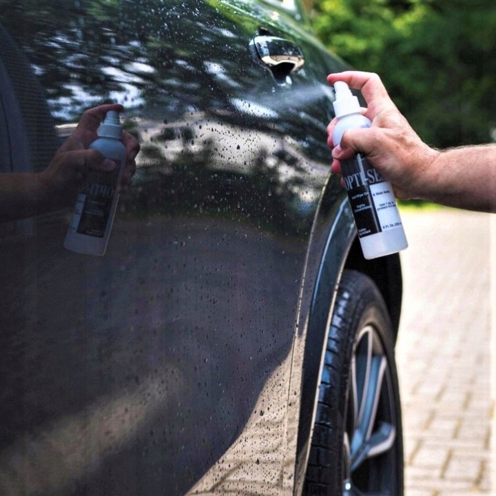 Підготовка поверхні: переконайтеся, що автомобіль чистий і сухий. Якщо він брудний або забруднений, ретельно вимийте його та переконайтеся, що він висох перед використанням продукту.Підготовка продукту: струсіть пляшку Opti-Seal, щоб ретельно перемішати вміст перед використанням. Нанесення на суху поверхню: нанесіть невелику кількість Opti-Seal (зазвичай кілька крапель) на мікрофібровий аплікатор або м’яку губку для нанесення. Не використовуйте занадто багато, оскільки продукт дуже ефективний.Розподіл продукту: акуратно розподіліть Opti-Seal на фарбу, намагаючись рівномірно нанести її на поверхню. Ви можете використовувати перехресні рухи, щоб забезпечити рівномірне покриття.Дайте висохнути: Opti-Seal дуже швидко висихає, тому після нанесення залиште його на поверхні приблизно на 15-20 секунд, щоб дайте йому затвердіти належним чином.< /li>Відполіруйте надлишки: використовуйте чисту м’яку тканину з мікрофібри, щоб обережно видалити надлишки Opti-Seal з поверхні. Ви можете робити це м’якими круговими рухами.Повторення процесу: залежно від ваших потреб ви можете повторити цей процес на інших частинах автомобіля.Час затвердіння: це рекомендовано залишити автомобіль у сухому місці приблизно на 1-2 години після нанесення Opti-Seal, щоб він повністю затвердів.Уникайте контакту з водою: намагайтеся уникати контакту з водою принаймні кілька годин після нанесення продукту, щоб забезпечити його ефективність. ➡️Пам’ятайте