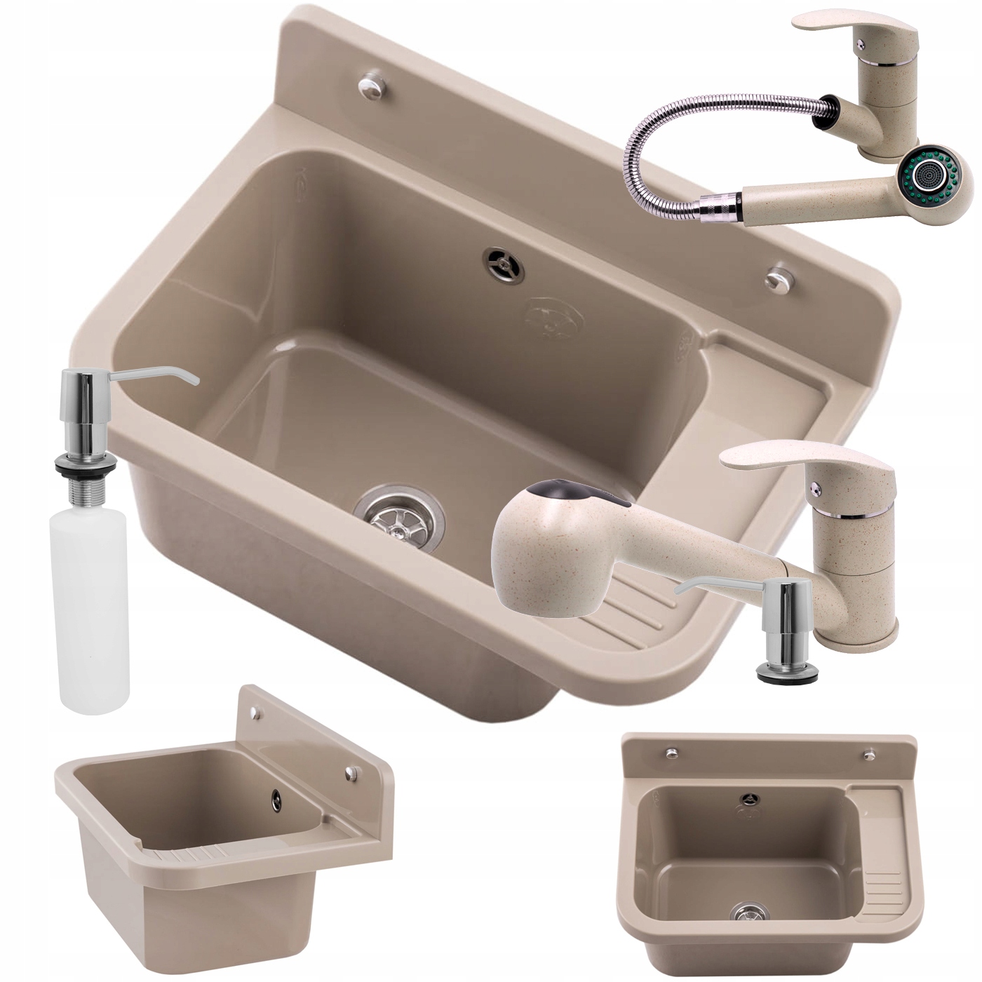 Господарська камера 50 х 34 х 21 см, бежева зі змішувачем з висувним носиком і дозатором 250 мл