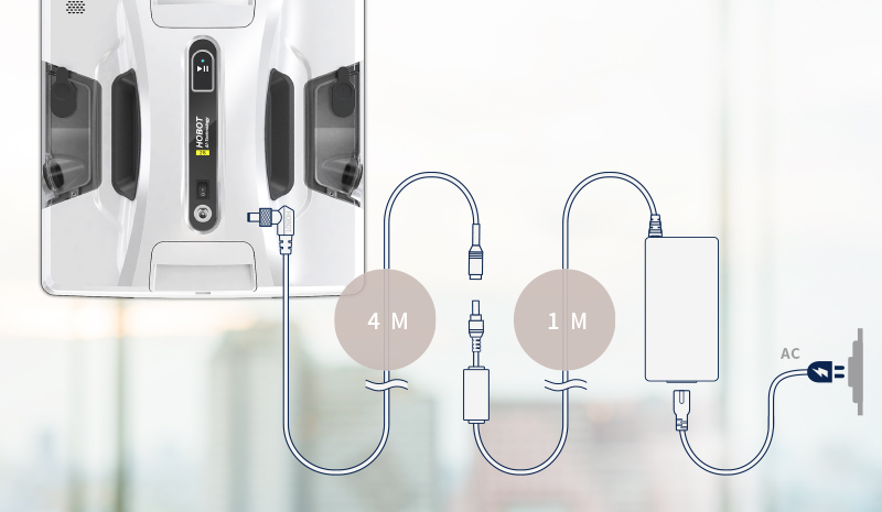 Довжина шнура живлення становить 5 метрів, що дозволяє HOBOT працювати на великих поверхнях і поверхнях подалі від електричної розетки.