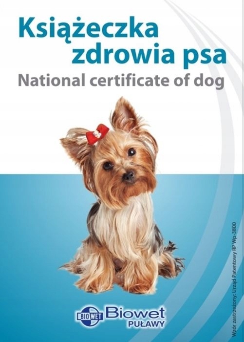 Книга здоров'я собак від Biowet Puławy - це документація основної інформації про здоров'я нашого вихованця. Така книга повинна бути у кожного цуценя і дорослого. Книга маленька, тому її можна брати з собою всюди. У такому документі ми знайдемо перебіг захворювань нашої собаки, проведене лікування, будь-які алергії на ліки чи поживні речовини та інші дії, які виконує ветеринар. Санітарна книжка собаки написана польською мовою з перекладом на англійську, що дуже корисно, коли наш вихованець виїжджає за кордон.