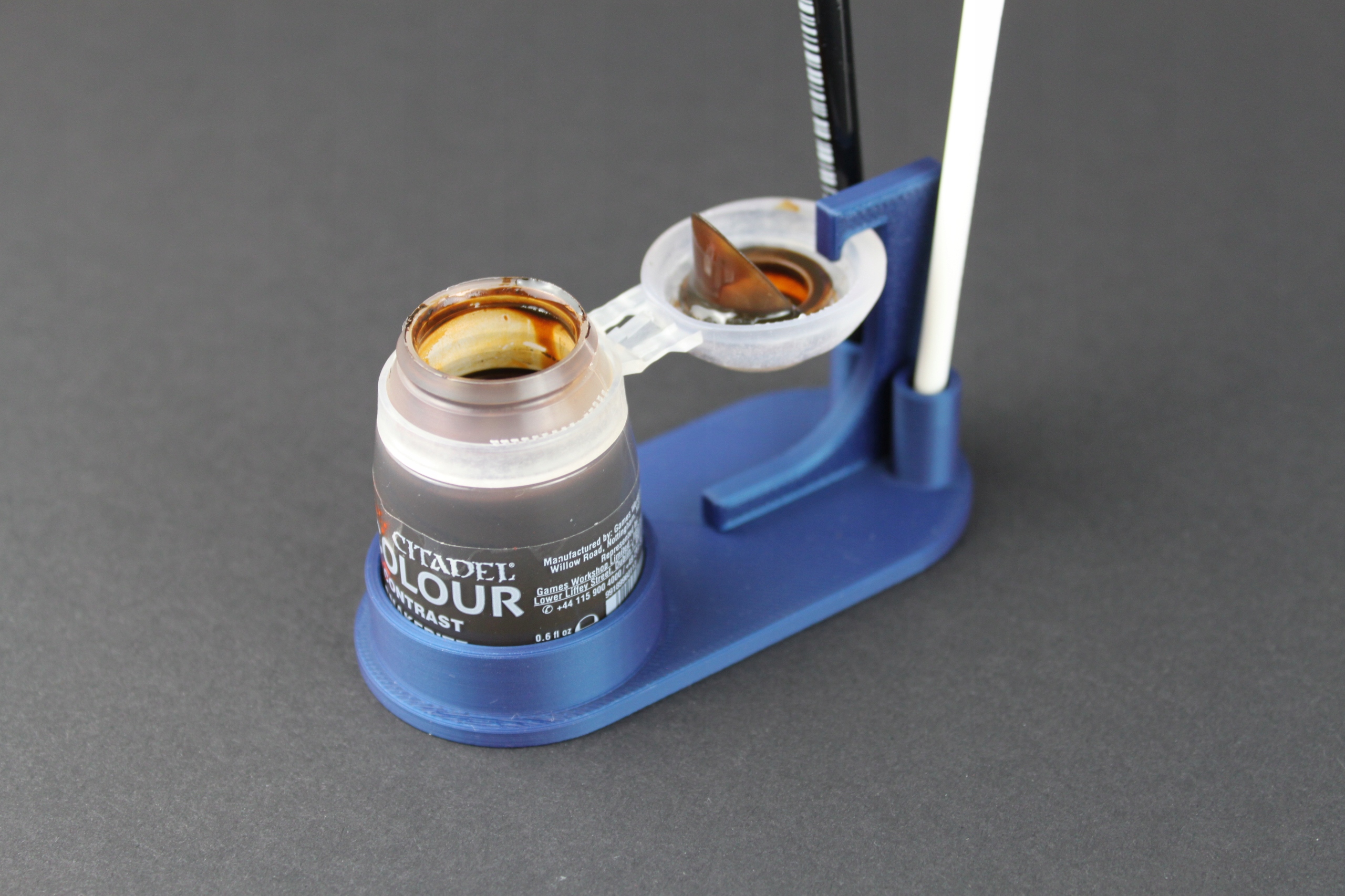 � кінець падаючими фарбами та закритими кришками! Ця підставка є обов'язковою для кожного художника статуетки, стабілізує фарбу, блокує кришку і забезпечує місце на пензлик, тож ви можете зосередитись на пензлик, завдяки точному малюнку.