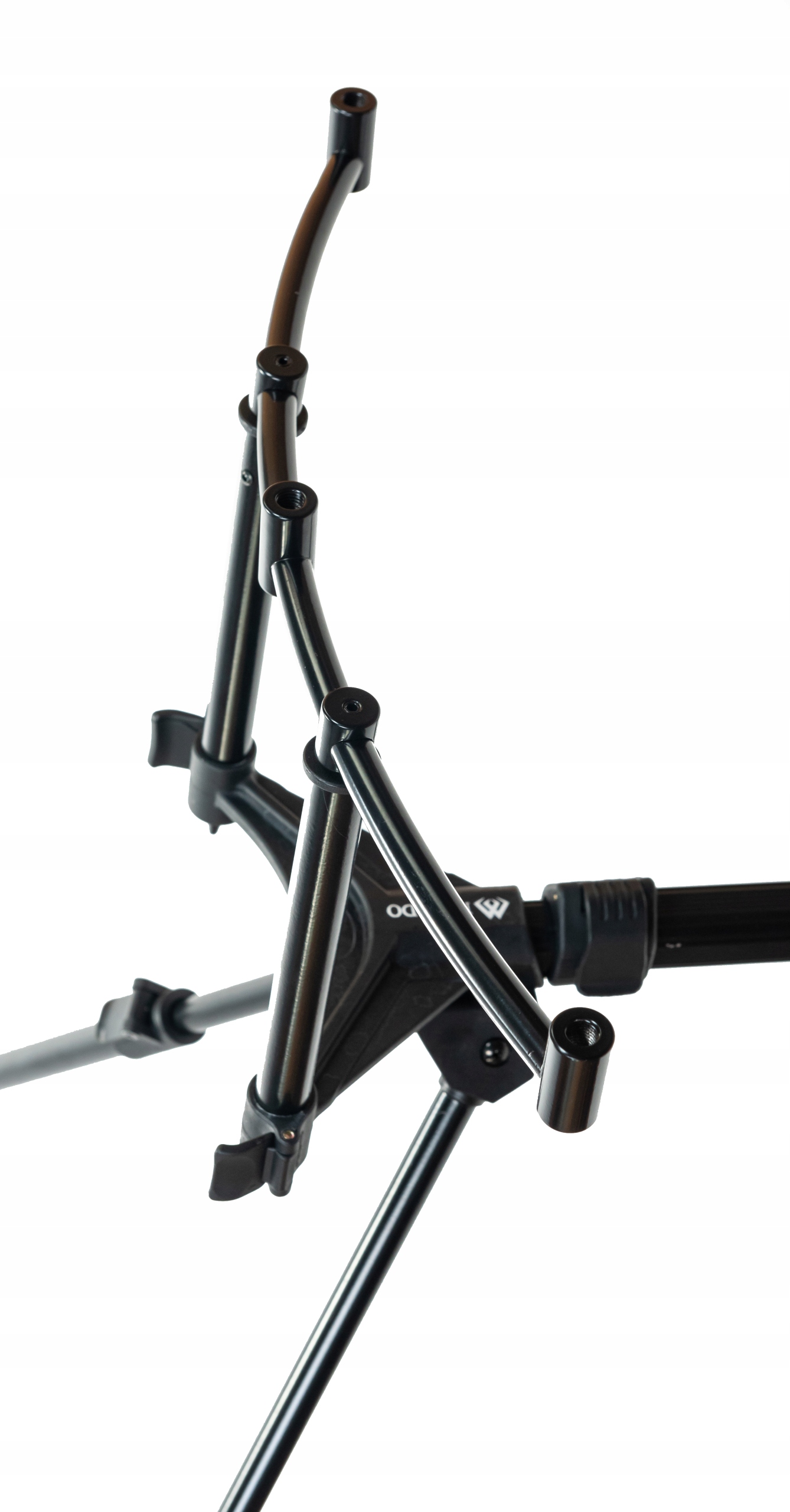Універсальна штанга для тих, хто шукає стабільний штатив, з можливістю розміщення до 3 вудилищ одночасно. Кут нахилу вудилищ можна регулювати декількома способами, в тому числі регулюючи базбари, довжину ніжок і довжину підставки, що дозволяє адаптуватися до будь-яких умов на рибальському угідді. Rod Pod із сучасними вигнутими баз-барами для 3 вудилищ. Інноваційне рішення забезпечує достатньо місця для великих котушок і подовжує кінчики вудилищ, збільшуючи діапазон чутливості наборів.