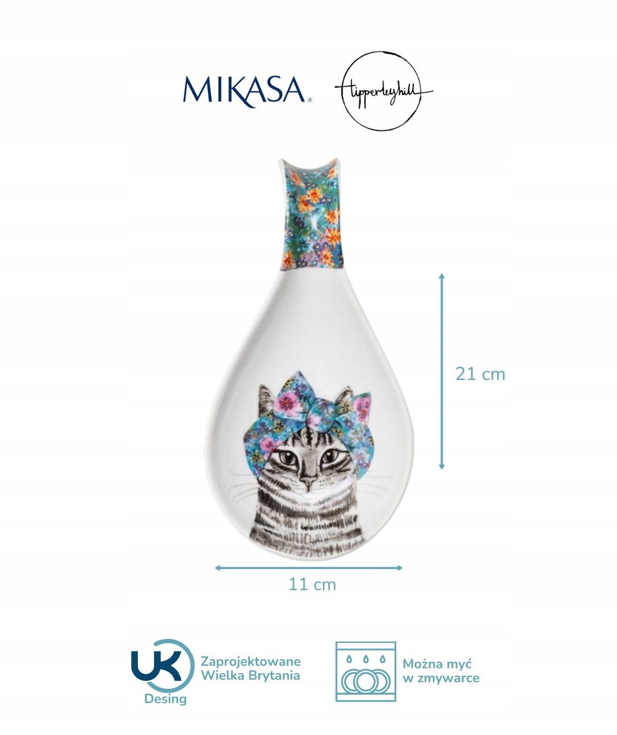 Тримайте порядок на своїй кухні за допомогою цієї підставки для ложок із колекції Tipperleyhill від Mikasa, прикрашеної вражаючою графікою милого кота. Виготовлений із міцної порцеляни, він запобігає потраплянню крапель і плям на стільницю, а також є практичним елементом кухонного обладнання. Це термостійкий тримач для ложок, черпаків та іншого посуду, що робить його універсальним кухонним аксесуаром. Ідеально підходить для використання під час приготування їжі чи подачі, ця підставка не лише захищає поверхні, але й додає шарму вашим кулінарним враженням.