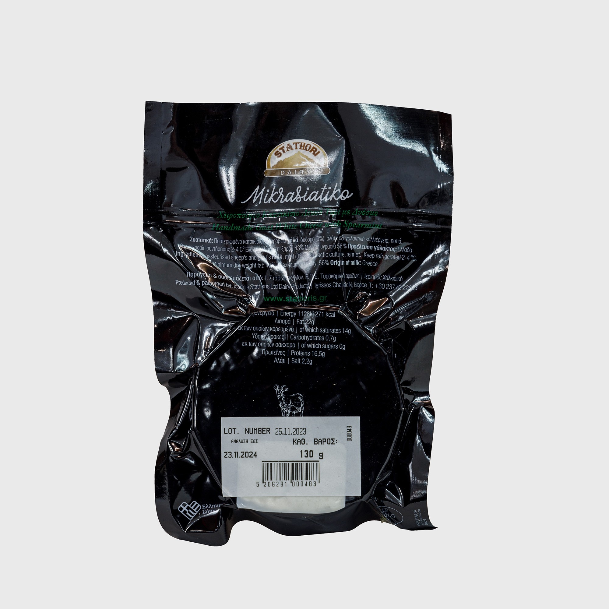 mikrasiatiko - білий козячий сир з додаванням дуже невеликої кількості овечого молока. Типовий ручний продукт, невеликий, який можна вживати в такому вигляді або запеченим у духовці. Згідно з традицією наших предків з Малої Азії, Micrasiatiko виробляється з любов'ю та турботою, якими будуть пишатися наші предки. Поєднуючи унікальний смак зеленого перцю зі старими смаками кухні Константинополя, Мікрасіатіко займає почесне місце на нашому повсякденному столі.