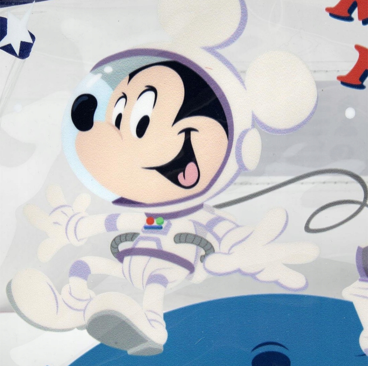 Прозора косметичка з мотивом Міккі Мауса, в яку поміститься весь комплект, застібається на блискавку.