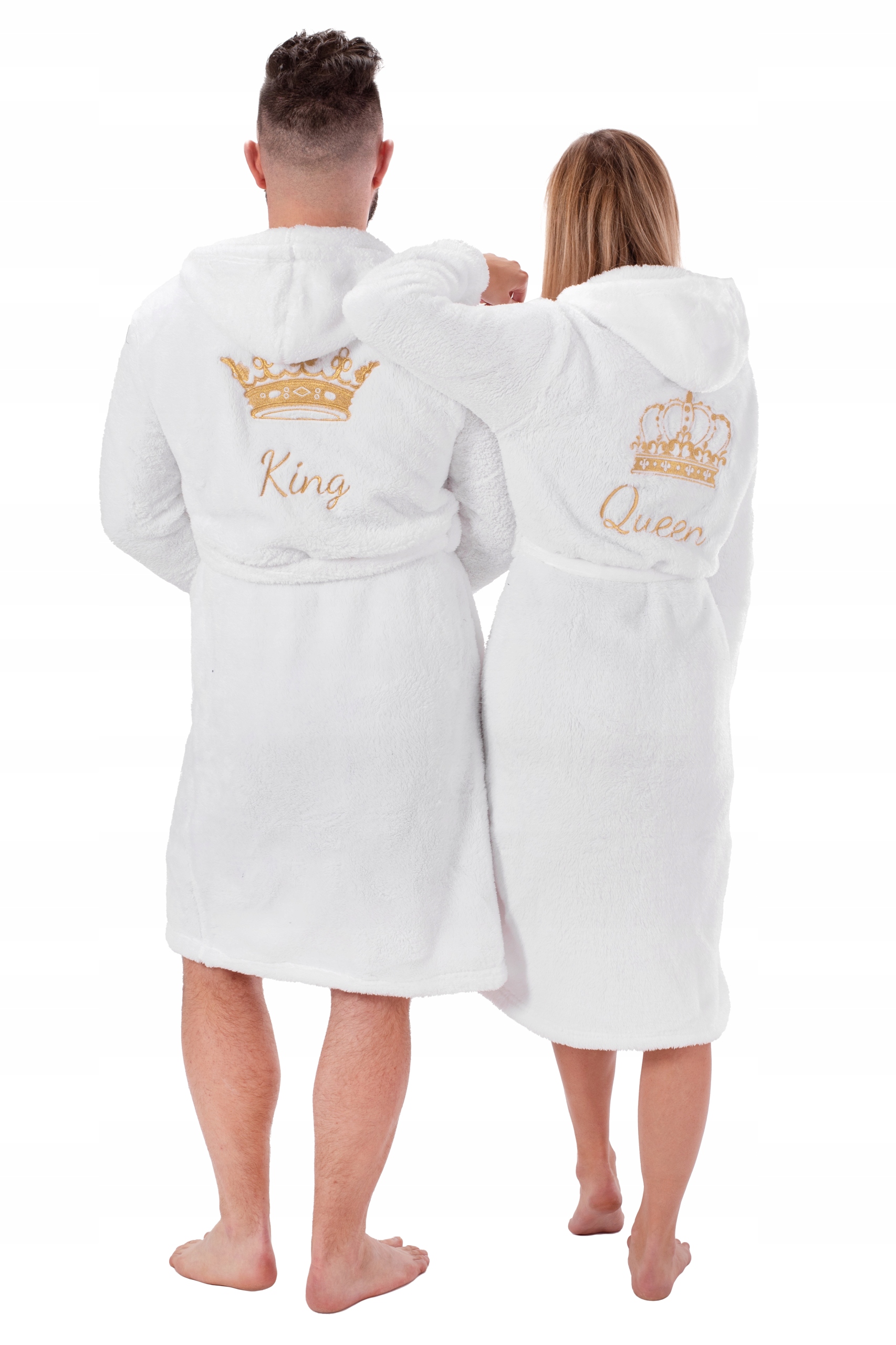 MIĘKKI SZLAFROK MĘSKI Z HAFTEM KING BIAŁY Z KAPTUREM S/M NA PREZENT