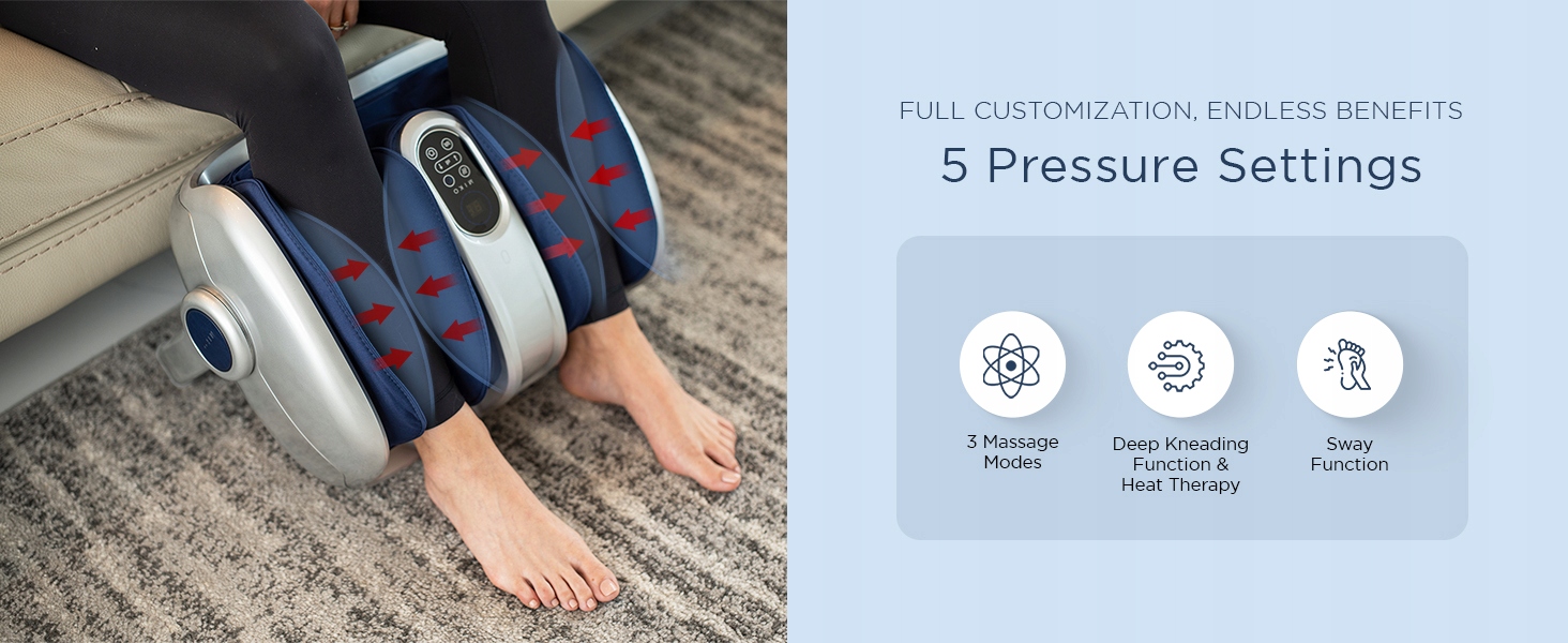 - Чисте полегшення та повна обкладинка: Нещодавно розроблений регульований стрижень дозволяє повний масаж стоп, кубів, ніг, телят, дуги та підборів. Завдяки прикріпленому бездротовому дистанційному керуванню ви можете легко відрегулювати налаштування комфорту, не згинаючись. Полегшення в підошовній фасції, нейропатії, діабетичній нейропатії, хронічному болю, поганому кровообігу та багатьма іншими недугами. Регульовані рівні інтенсивності: Завдяки добре розробленій панелі управління та бездротовим пультом дистанційного керування, ви можете легко вибрати між 5 налаштуваннями тиску, 3 режимами масажу, коливанням функції, функцією глибокої замішування та теплотерапії, встановивши штангу на