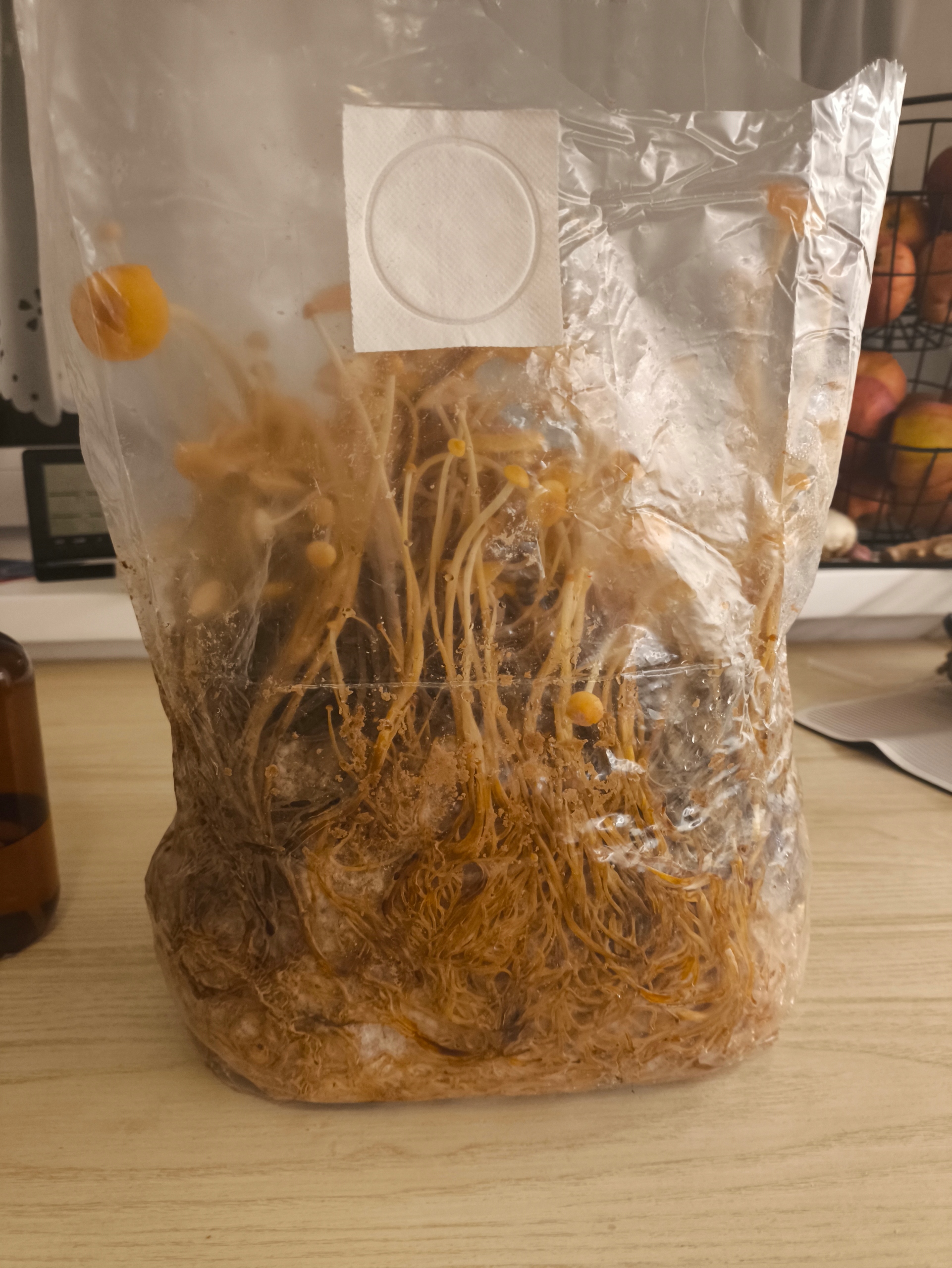 найкраще плодоносить «зверху». Просто зробіть невеликий надріз на 5 см над фільтром. Коли плодові тіла лопнуть, ви можете відкрити пакет, зробивши надріз на висоті ущільнення.