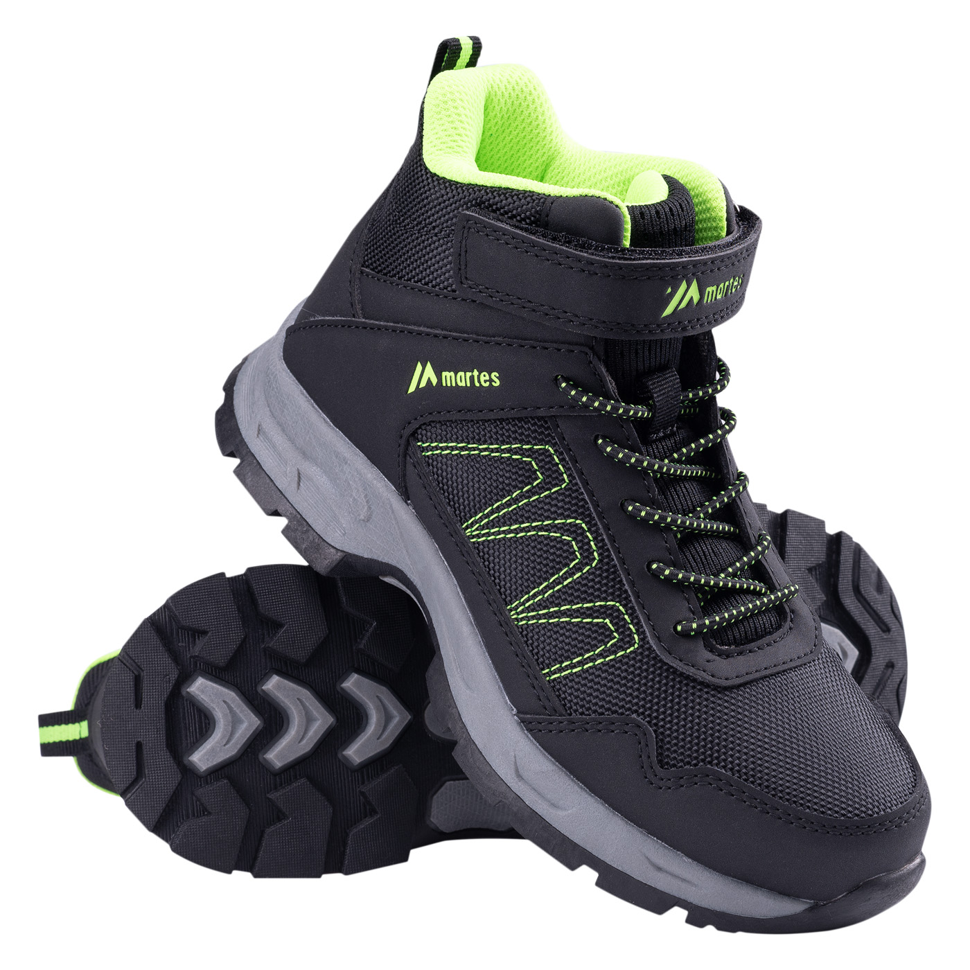 Mikori Mid Jr Phieing Shoes від Martes Essentials має підняту верхню верхню частину, що ідеально підходить для рекреаційних поїздок до гір , стабілізуючи щиколотку під час ходьби. текстильний матеріал , що використовується у верхній частині, збільшує дихання взуття. Класичні шнури були замінені еластичними гумками , що полегшить вашій дитині надягати та знімати взуття. Ми отримуємо додатковий захист верхньої частини від механічних пошкоджень завдяки так званому ободу. ободок та армований пальці взуття ефективно захищають пальці ніг і стопи під час прогулянки по скелястому ґрунті. Підошва взуття виготовлена з гуми, яка захищає стопу від каменів і нерівномірної місцевості і забезпечує хорошу адгезію до землі.