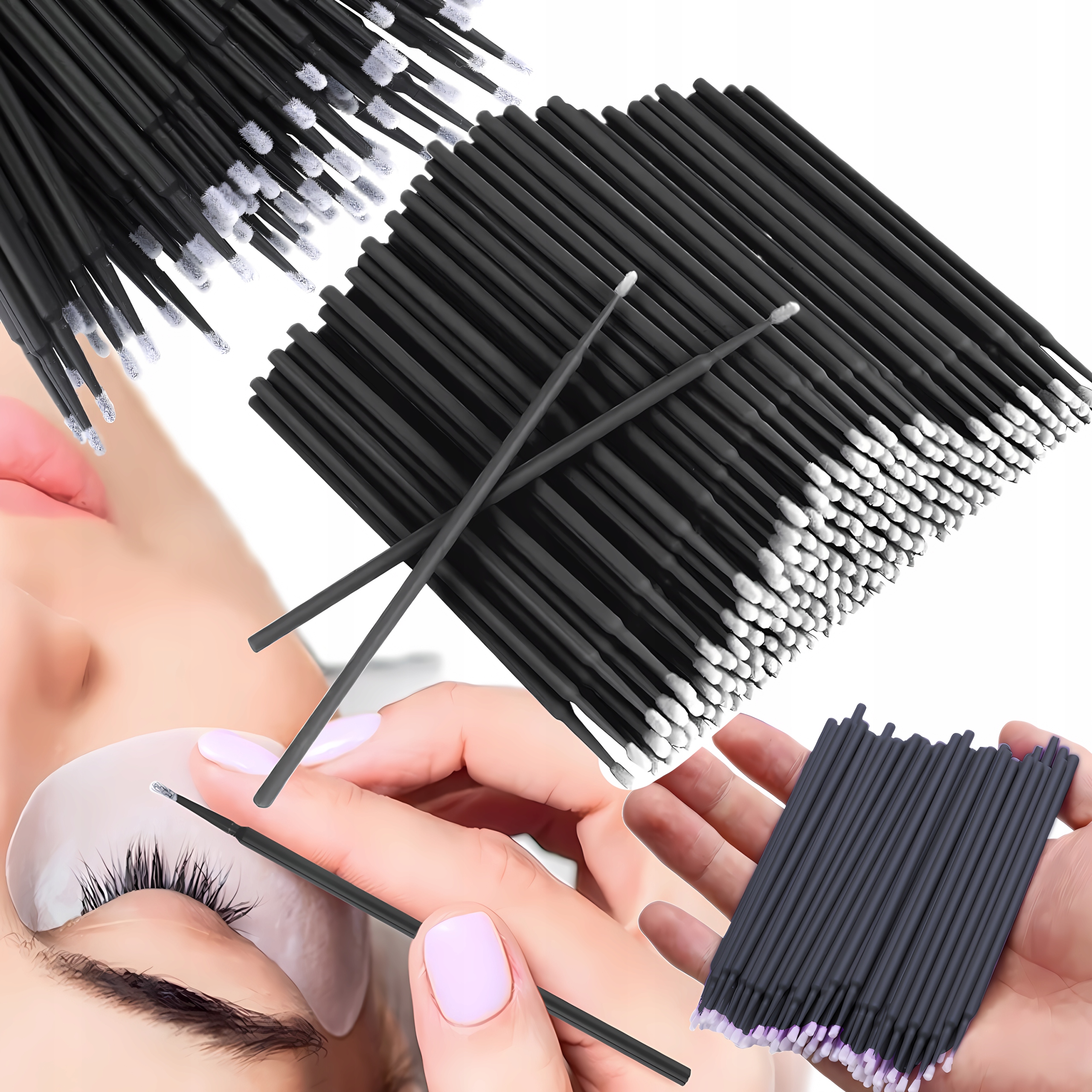 Мікро -вільні аплікатори -це незамінний інструмент у щоденному догляді та професійних косметичних процедурах. Ідеально підходить для застосування клею для вій, косметичних препаратів, , а також з точним очищенням делікатних ділянок шкіри. Завдяки безсоромній структурі палички не залишають залишків, що гарантує чистоту та гігієну під час використання. їх гнучка конструкція забезпечує комфорт, а пакет містить до 100 штук , завдяки якому їх достатньо довго. Сироватка, фарби або інша косметика. Специфікація