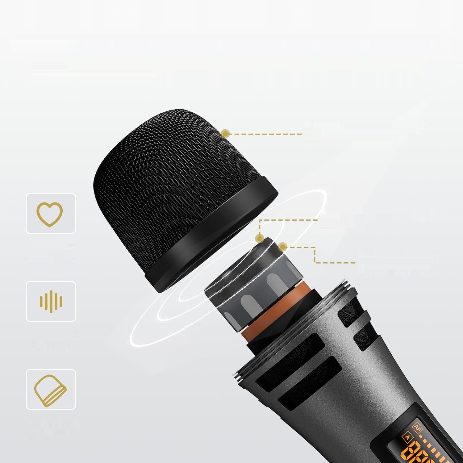 Мікро -караоке Tonor - це бездротова, динамічна система мікрофонів рук з чотирма мікрофонами, яка пропонує відмінну якість звуку та стабільний сигнал завдяки технології UHF.