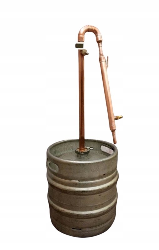 Мідний прямий дистилятор (дистилятор) із дефлегматором висотою 60 см і прямим охолоджувачем. У набір входить ємність 30 л з нагрівачем, наповнювач (легко знімається) і РК-термометр.