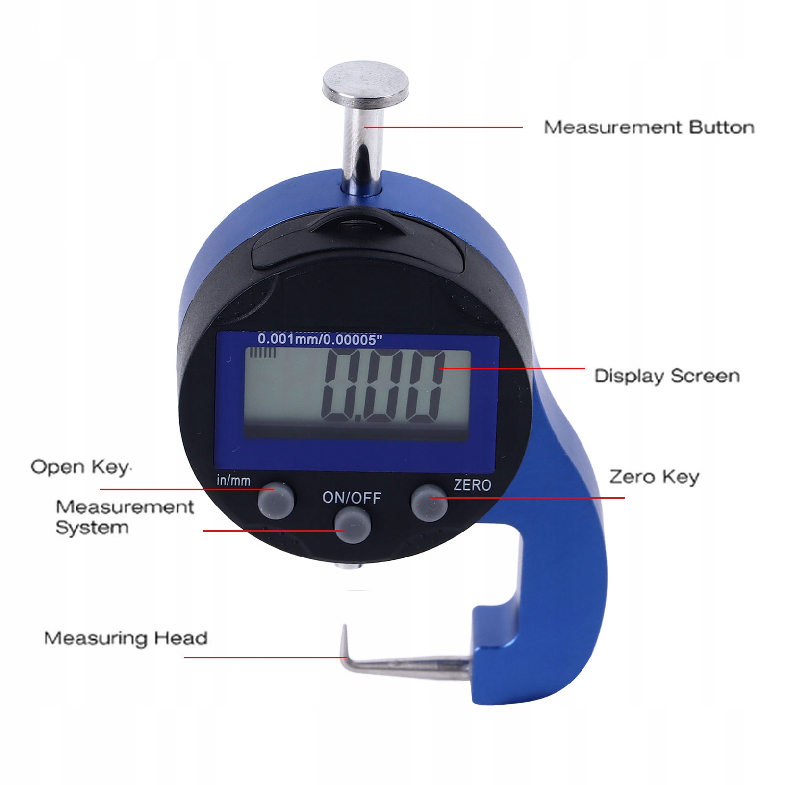1, висока точність: У цій товщині технологія товщини має цифрову технологію дисплея з роздільною здатністю 0,0005 дюймів і 0,01 мм, забезпечуючи точне та стабільне вимірювання. 2, подвійна порада: Цей цифровий лічильник товщини має подвійні поради, які можуть легко виміряти об'єкти різних форм і розмірів, забезпечуючи гнучкість та точність. 3, живлення акумулятора: Цей електронний лічильник товщини працює від літію-манганської акумулятора на 220 мАг CR2032, що забезпечує довгострокове вимірювання. 4, відповідний діапазон: цей метр товщини мікроцифтера підходить для промислових, лабораторних та інших застосувань, що використовується для вимірювання товщини деталей, аркушів та різних матеріалів. 5, Компактний розмір: Цей цифровий лічильник товщини є компактним і легким, зручним для використання та переміщення, а корпус алюмінієвого сплаву робить його стійким до зносу та міцного.