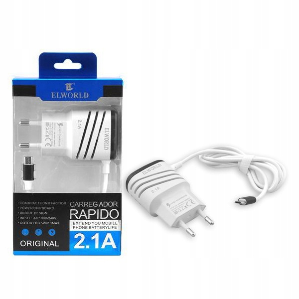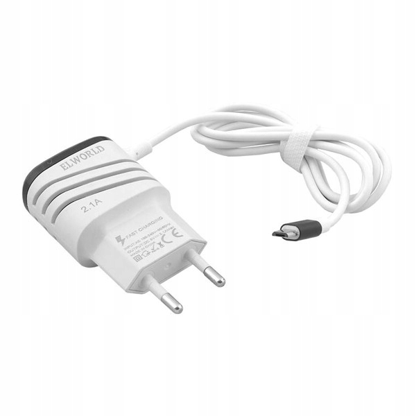 ЗАРЯДНИЙ ПРИСТРІЙ USB MICRO 2.1A БІЛИЙ ЧОРНИЙ БЛОК ШВИДКОГО ЗАРЯДЖАННЯ 2000 мАг 2XUSB Мережевий зарядний пристрій Fast Charging, штекер Micro USB, 2xUSB 2.1A. Функціональний мережевий зарядний пристрій, що складається з мережевого адаптера, оснащеного 2 портами USB і вбудованим кабелем microUSB. Вбудований кабель і додаткові розетки дозволяють заряджати до 3 мобільних пристроїв одночасно. Біло-чорний корпус з унікальним дизайном, виготовлений з пластику, робить адаптер дуже сучасним і чудово виглядає при підключенні до розетки. Адаптер має вихідну потужність 10W, два USB порти призначені для iOS і Android пристроїв відповідно. Вбудований 1-метровий кабель дозволяє легко живити пристрої, сумісні з інтерфейсом microUSB