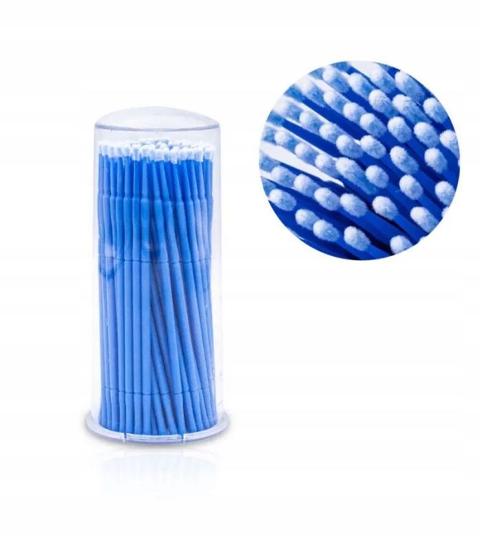 МІКРОАПЛІКАТОРИ для вій БЕЗВОЛОКОННА ватна паличка 2,0 мм 100 шт. СИНЯ