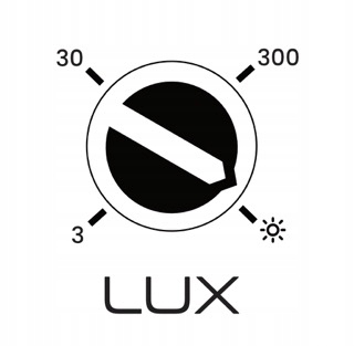 Регулювання роботи пристрою в залежності від інтенсивності освітлення. Датчик може реагувати вдень, коли він встановлений у максимальне положення (значок сонця). При значенні «3» пристрій буде активовано лише в темряві. При встановленні максимального значення - 2000 LUX, датчик активує підключений пристрій як вдень, так і вночі.