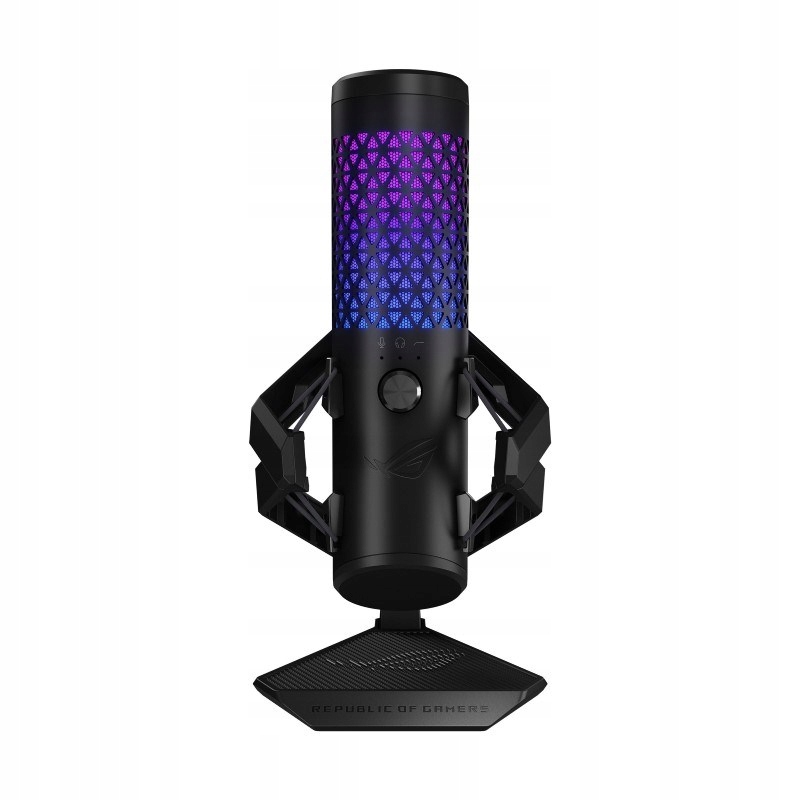 Професійний кардіоїдний ігровий конденсаторний мікрофон має 25-мм конденсаторний капсюль студійної якості, частоту дискретизації 192 кГц/24 біта, фільтр високих частот, вбудований поп-фільтр, преміальне металеве амортизаційне кріплення та освітлення ASUS Aura Sync RGB.