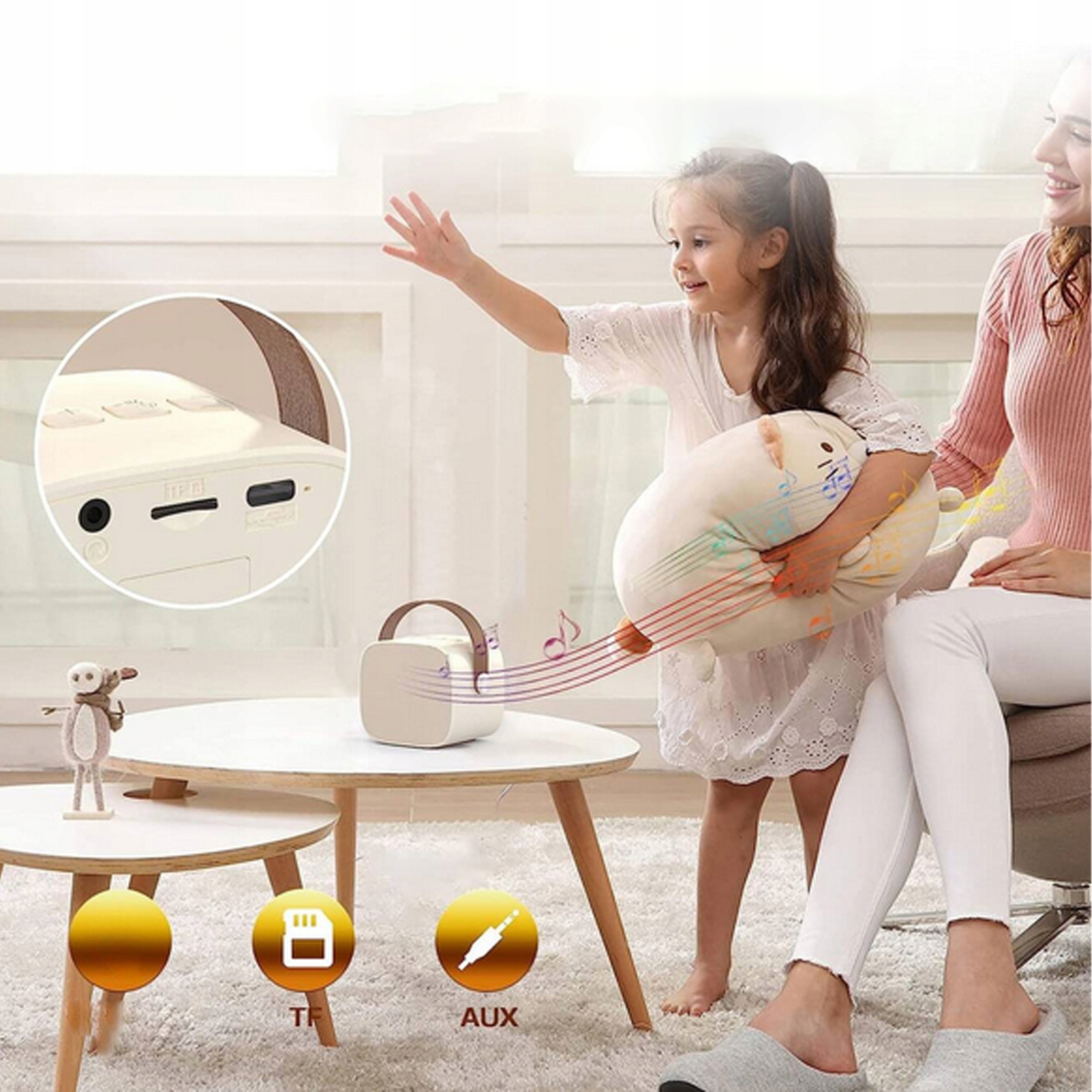 Коли ви хочете продемонструвати свій вокал, візьміть мікрофон і почніть співати. І коли ви захочете послухати музику – на домашній вечірці, у подорожі, під час прибирання будинку чи під час відпочинку – гучномовець дозволить вам це зробити.