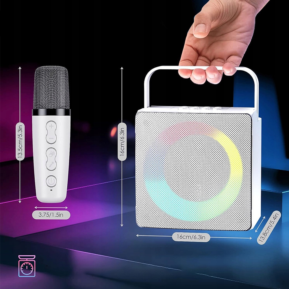 - Компактна караоке-машина для дорослих має високоякісні ультранизькочастотні динаміки потужністю 10 Вт.