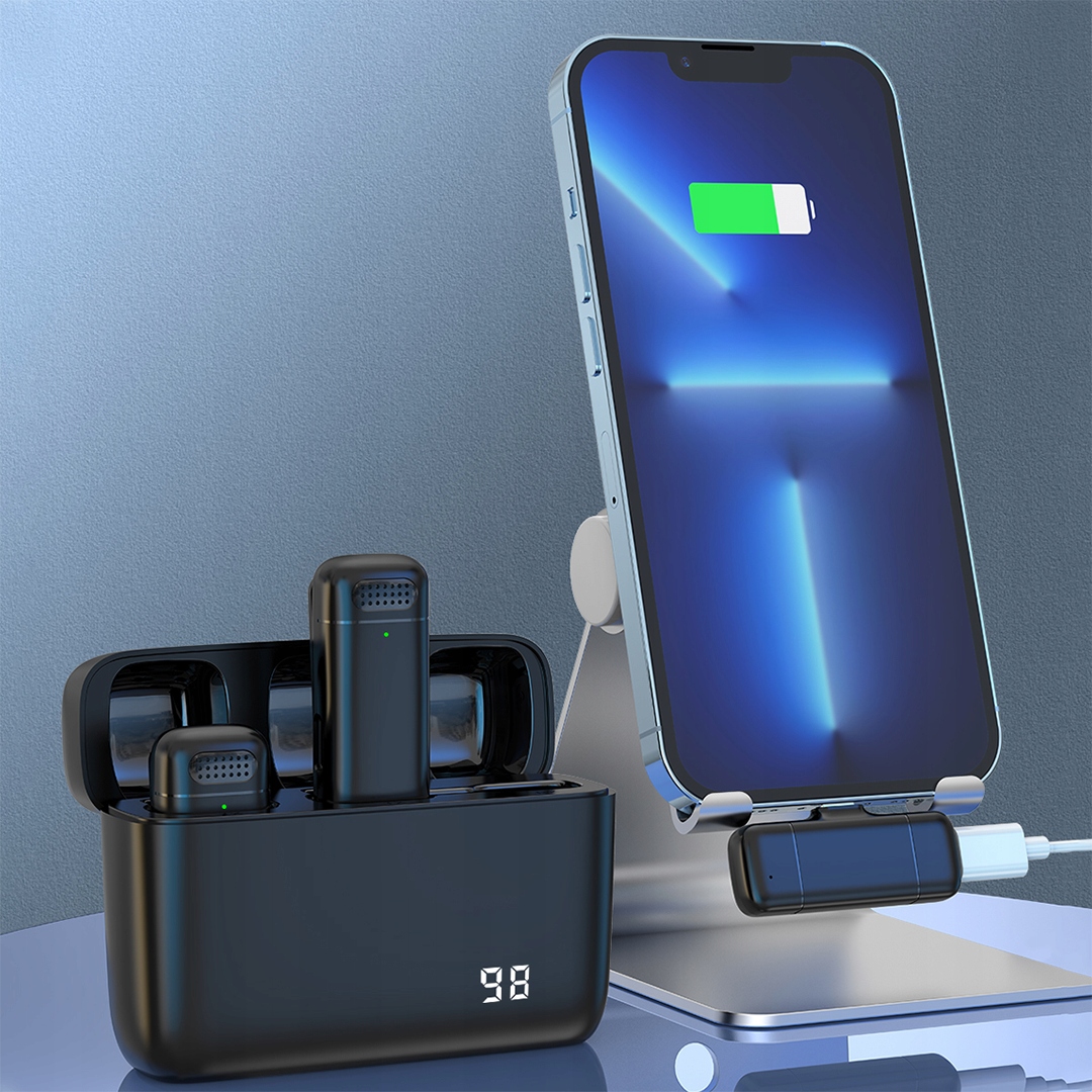 ✅ Унікальний набір: отримайте чудову якість звукуза допомогою нашого набору з двома мікрофонами b>,передавач USB-C, вхідний адаптер Lightning і стильний футляр із функцією заряджання. Наші мікрофони сумісні з пристроями Android та iOS.
