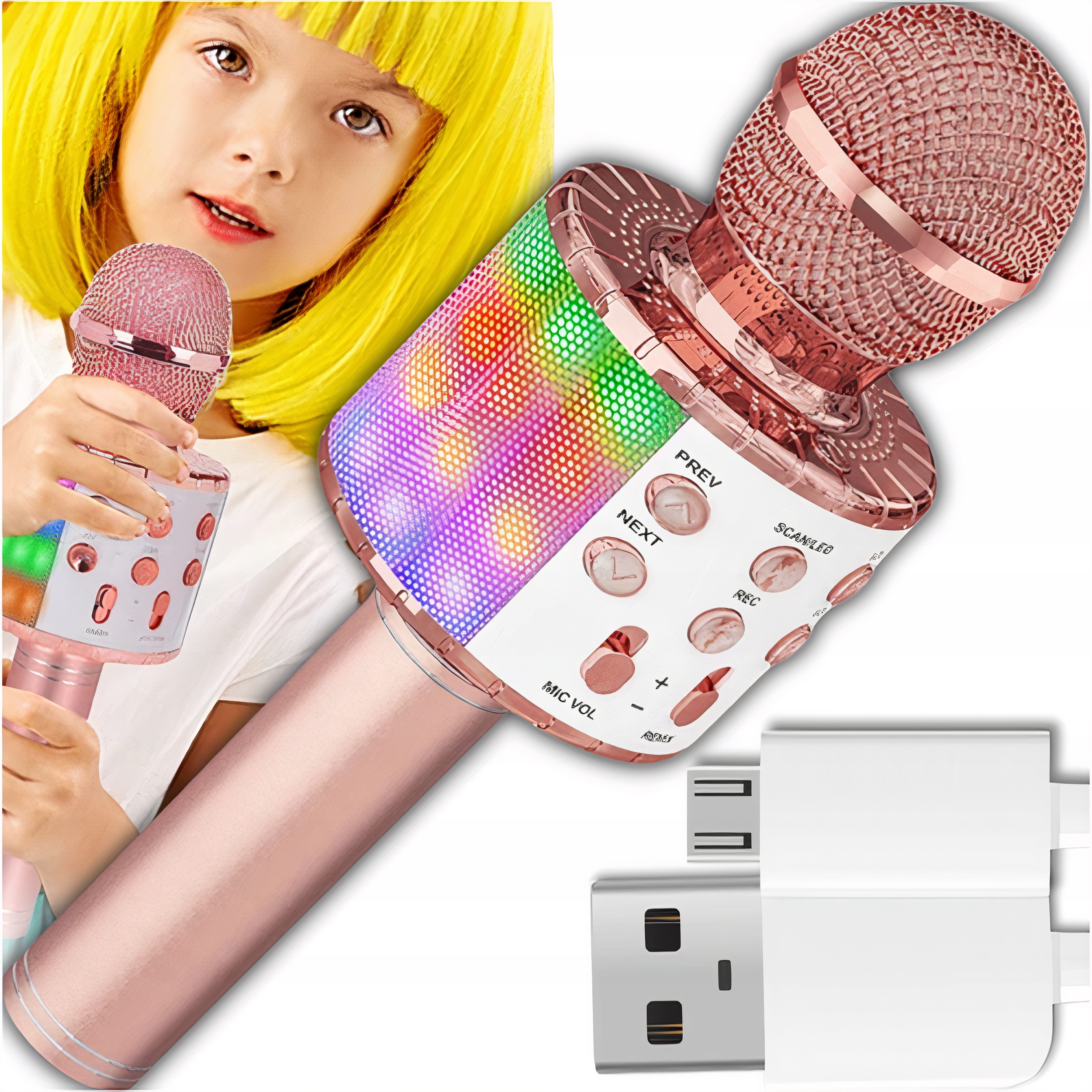 Наш мікрофон караоке - це чудовий вибір для вашої дитини, а не лише , це нова модель і має багато переваг, що виділяється на задньому плані інших. Він має унікальний , делікатний підсвічування , що дасть конкретну атмосферу під час співу. Він вже упакований у новіші , суцільна та барвиста упаковка , яка чудово підходить для подарунка. Крім того, наш мікрофон має кращий акумулятор з більшою ємністю , що дозволить тривати час. Ця модель має професійний мікрофон з функцією PVM (Pro Voice Mixer) завдяки якому є швидка реакція на мовлення та чистий звук без перешкод. Живопис зроблений краще, ніж у попередніх моделях, він більш міцний і виглядає краще.