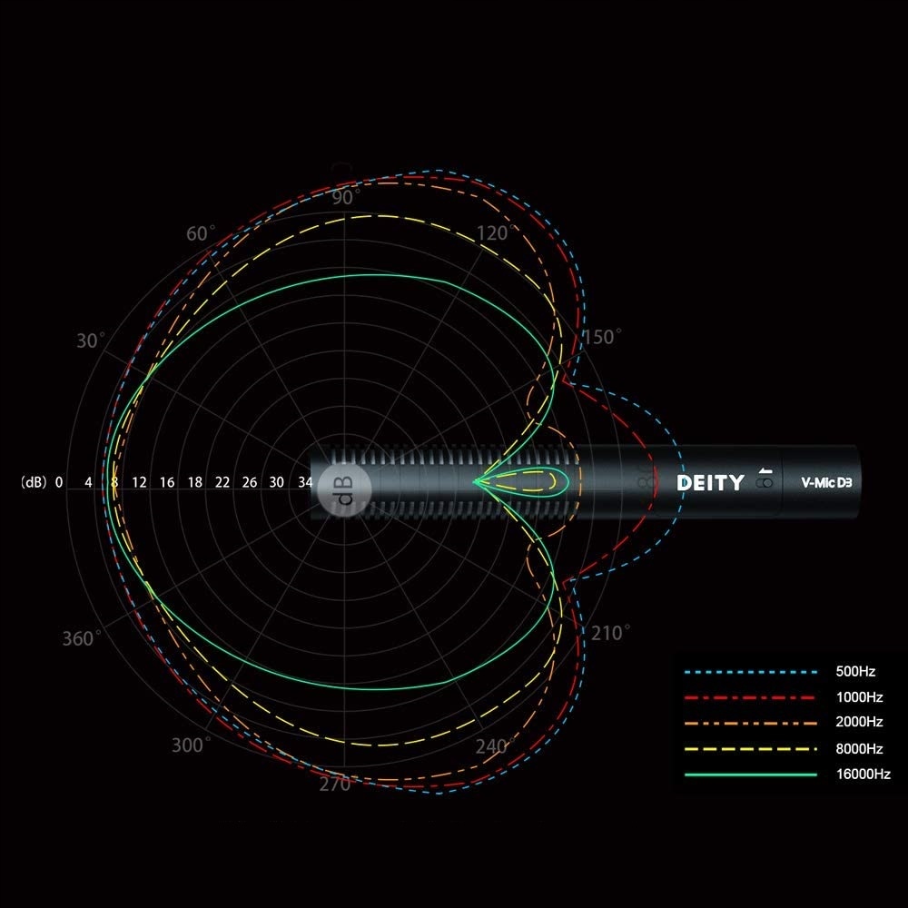 Мікрофон Deity V-Mic D3 відрізняється своєю суперкардіоїдною характеристикою.