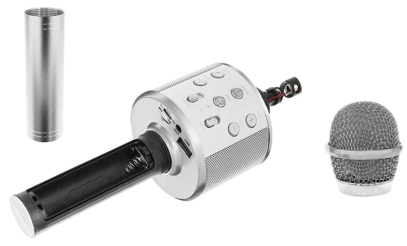Мікрофон для караоке з сріблястим динаміком Bluetooth 4.0