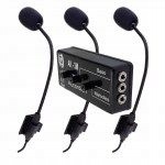 АК-3М. Ця комплексна система перетворює будь-який акордеон в електроакустичний. Його вдосконалена схема створює найнасиченіше звучання, яке може видати акордеон. Ця система складається з мікшера-передпідсилювача і трьох якісних мікрофонів. У мікрофонах використовується технологія, яка зменшує зворотний зв’язок. Вони мають лобове скло з пінопласту та гнучку руку (гусячу шию), що дозволяє розміщувати гармошки в різних положеннях. На попередньому підсилювачі є ручки, гучність і тон мелодії мікрофона, а також гучність басів мікрофона. Це дозволяє безперервно мікшувати 3 мікрофони з реалістичністю та чудовим відгуком. Попередній підсилювач має 3 входи (3,5 мм) для мікрофонів і вихід jack (6,3 мм). Можна підключити попередній підсилювач безпосередньо до P.A. або акустичний підсилювач. Сумісний з більшістю бездротових систем і педалей ефектів. Легко встановлюється на акордеон і швидко знімається з нього. Мікшер з самоклеючою монтажною стрічкою (липучка) і мікрофони зі спеціальними самоклеючими кліпсами. Повністю оснащений батарейним відсіком. Живлення від 3 лужних батарей (тип годинника LR44). Слабкострумовий дизайн попереднього підсилювача забезпечує до 300 годин роботи між змінами батареї. **Альтернативне джерело живлення забезпечує фантомне живлення (48 вольт) при підключенні до мікрофонного входу XLR на консолі. Потрібен відповідний кабель (роз’єм XLR до 1/4 штекера) Живлення вимикається, коли штепсель вийнято. Розміри: довжина 80 х ширина 30 х висота 20 мм
