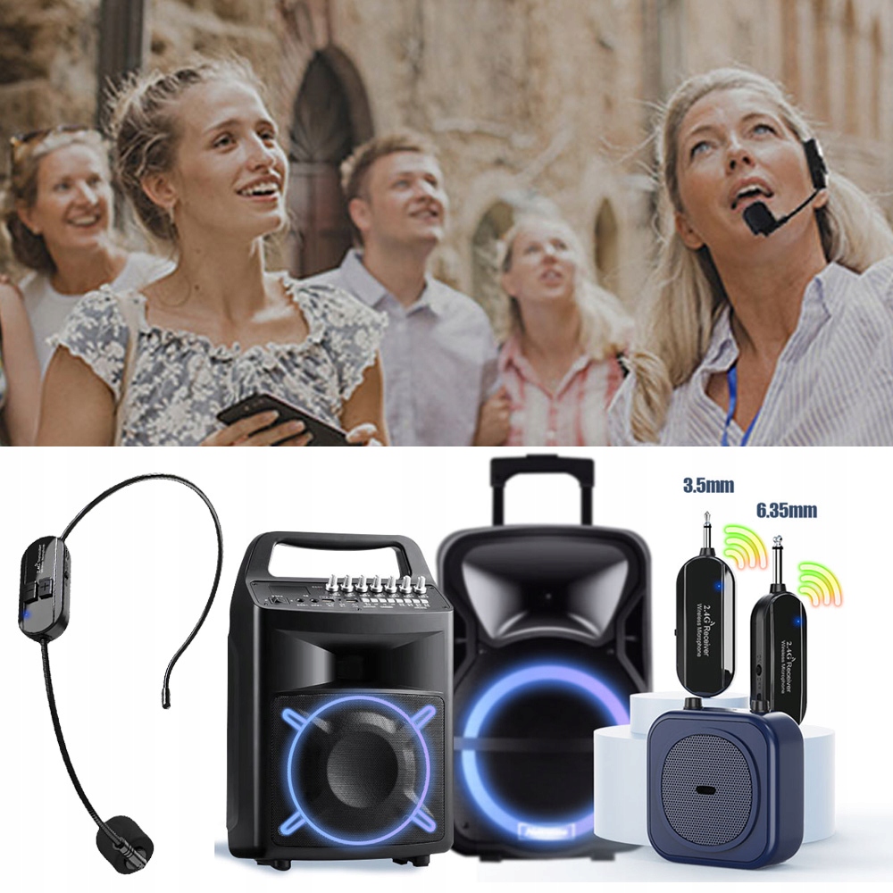 Мікрофон голови з 2,4 г підсилювача бездротового мікрофона, 2 в 1