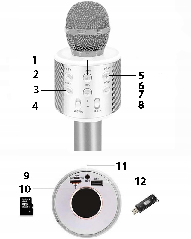 Мікрофон підключається через Bluetooth до телефону, планшета або SMART TV з операційною системою ANDROID або IOS. Після підключення мікрофона музика буде відтворюватися на вбудованому в мікрофон динаміку класичним способом, як у бездротових колонках. Потім запускаємо музичний плеєр або програму караоке або канал YouTube і відтворюємо вибраний музичний твір.