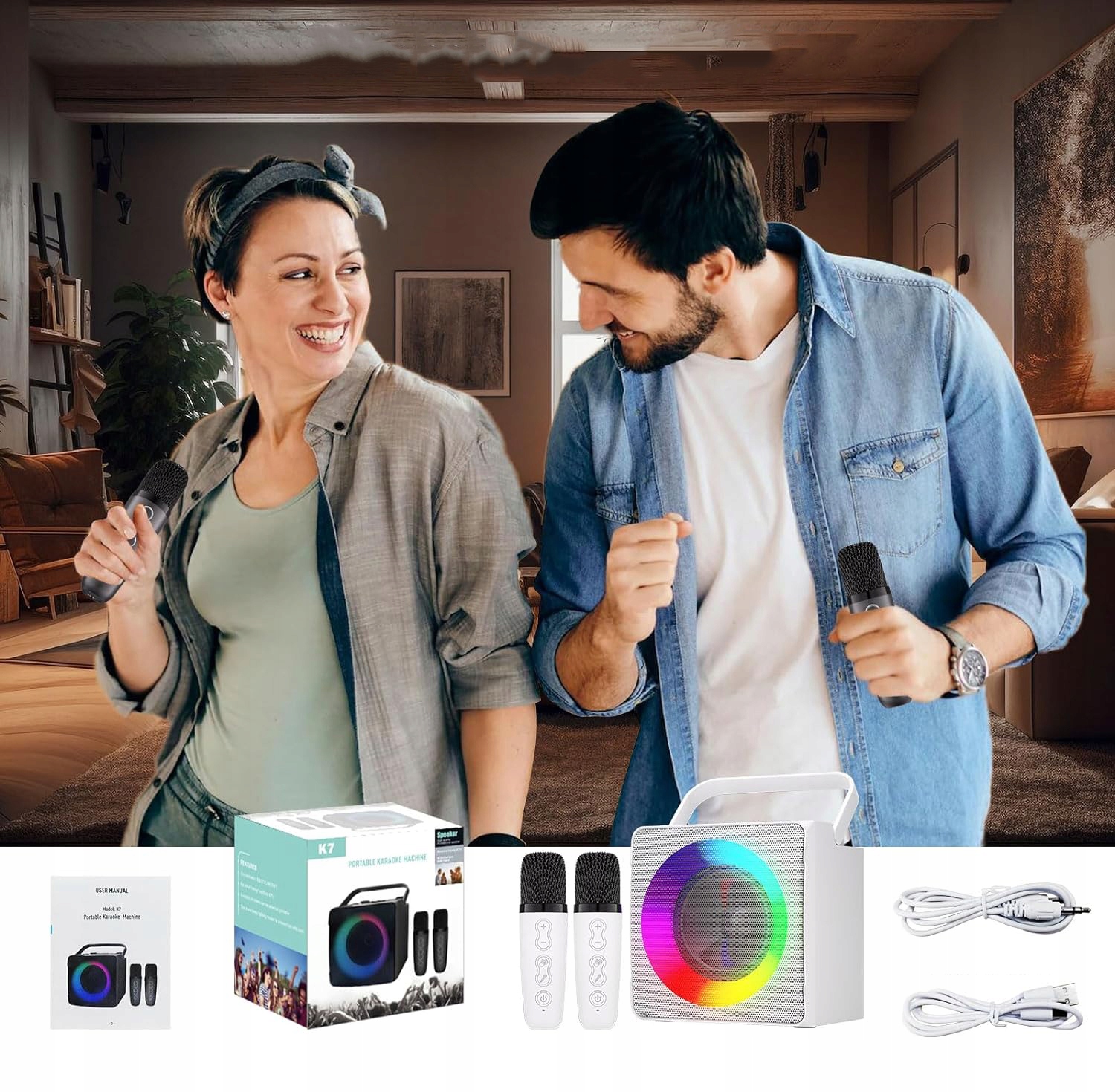 🎤🎤 【Різнокольорові вечірні вогні】 Співаючий динамік відображає яскраві та барвисті світлодіодні підсвічування. Ефект освітлення можна перемикати, щоб створити атмосферу вечірки. Тривале натискання кнопки вимикає світло. Ідеальний подарунок для родини та друзів