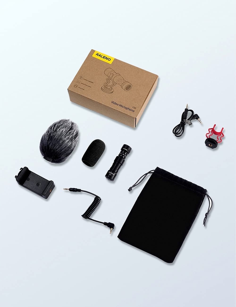 - Аксесуари+мікрофони можна використовувати не лише для камер, кабель TRS і TRRS може допомогти адаптуватися до більшої кількості пристроїв. Відповідний тримач для мобільного телефону та вовняний чохол дозволяють легко використовувати пристрій навіть на вулиці