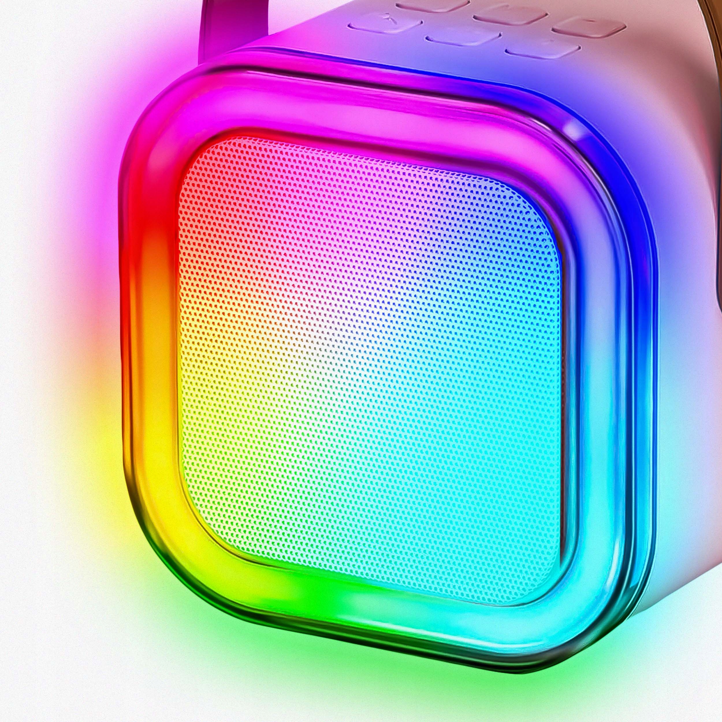 Динамік має світлодіодне освітлення, що дає унікальну атмосферу і освітлює кожну вашу вечірку! Простота підключення до будь -якого пристрою через Bluetooth означає, що ви можете негайно почати співати улюблені пісні без зайвих ускладнень.
