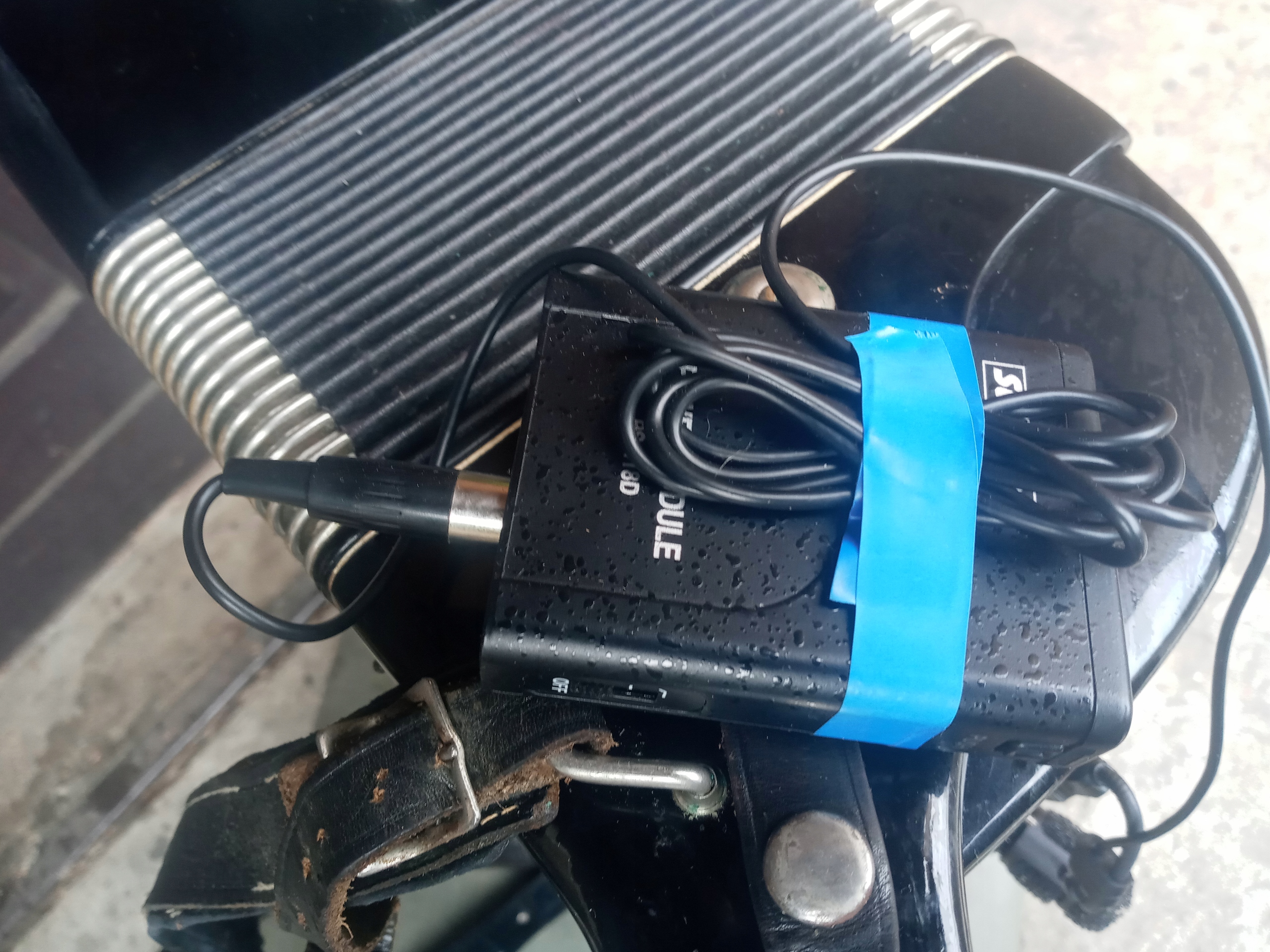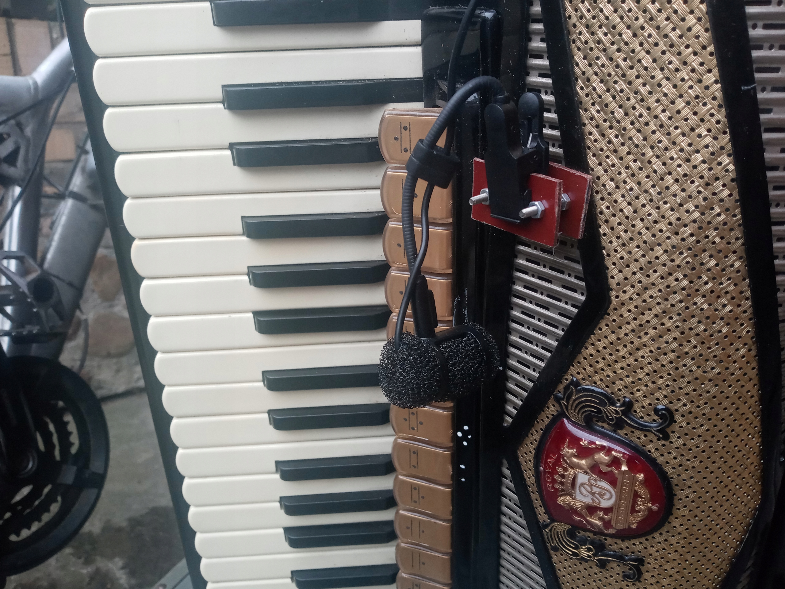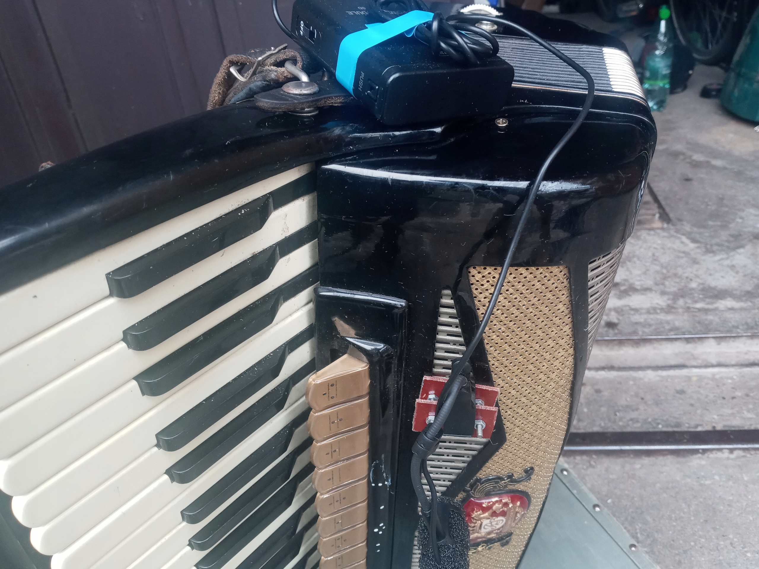 Після численних пошуків я нарешті знайшов мікрофон, який задовольнить смаки музикантів і не надто обтяжить бюджет. На фотографіях нижче показано, як я змонтував акордеон за 15 хвилин. Сам фантом досить важкий, тому що він зроблений з металу, але я одягаю його на верхній ремінь, який кріпить міх, тому що фантом має металеву шпильку знизу. Недоліком є те, що він живиться від батарейки 1,5 В АА і її потрібно час від часу перевіряти (її вистачає надовго). Ви також можете розширити його за допомогою бездротової системи, тут я використовував Alto Stealth 1, ціна приблизно 580 злотих.