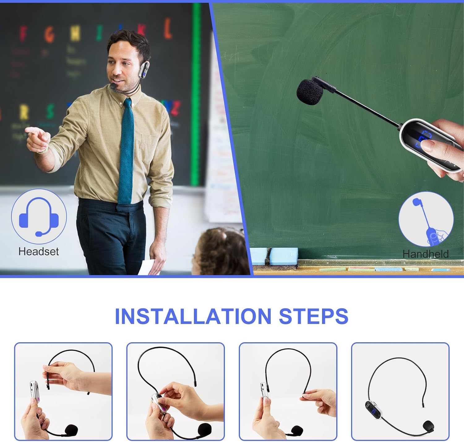 бездротова бездротова пов'язка мікрофона Lococo UHF з цифровим дисплеєм, 50 м бездротовим мікрофоном, для туристичного водіння, викладання, фітнес