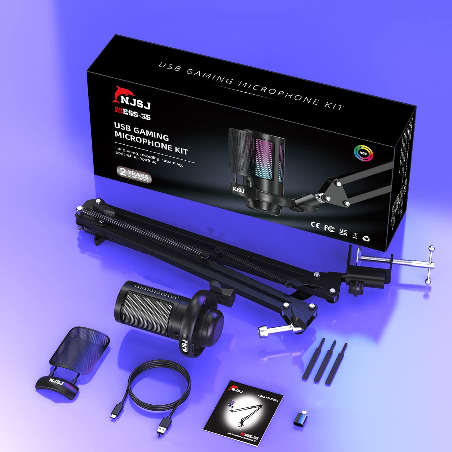 Мікрофон USB для ігор, ємнісний мікрофон RGB, студійний мікрофон, чорний